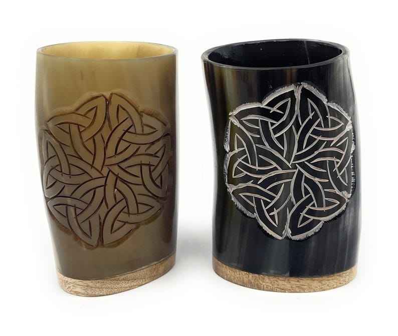 ทำจากควายธรรมชาติและแก้วทรงเขาวัวพร้อมฐานไม้แท้ไวกิ้งยุคกลาง