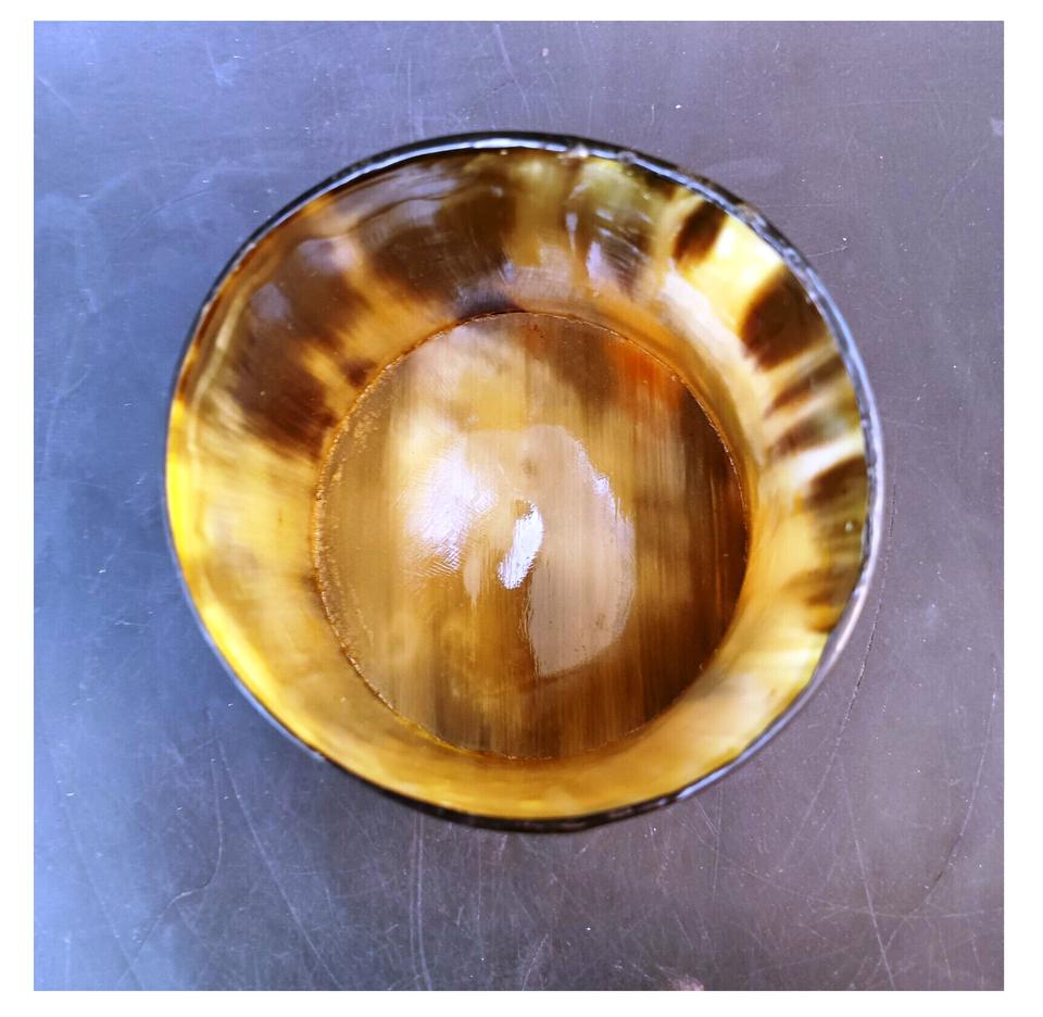 ถ้วยเขาไวกิ้งคาเวียร์ฮอร์นโบว์ตกแต่งอย่างแวววาวชามเขาควายทำด้วยมือจากธรรมชาติจริง