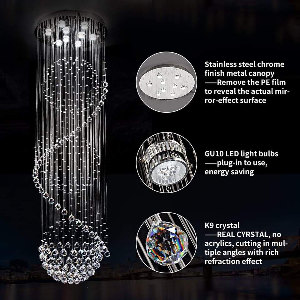 โคมระย้าลวดแขวนแบบดูเพล็กซ์สำหรับวิลลาโคมไฟระย้าคริสตัลหรูหราโคมระย้าติดอฟท์บันไดโคมระย้ายาวสำหรับอพาร์ทเมนต์