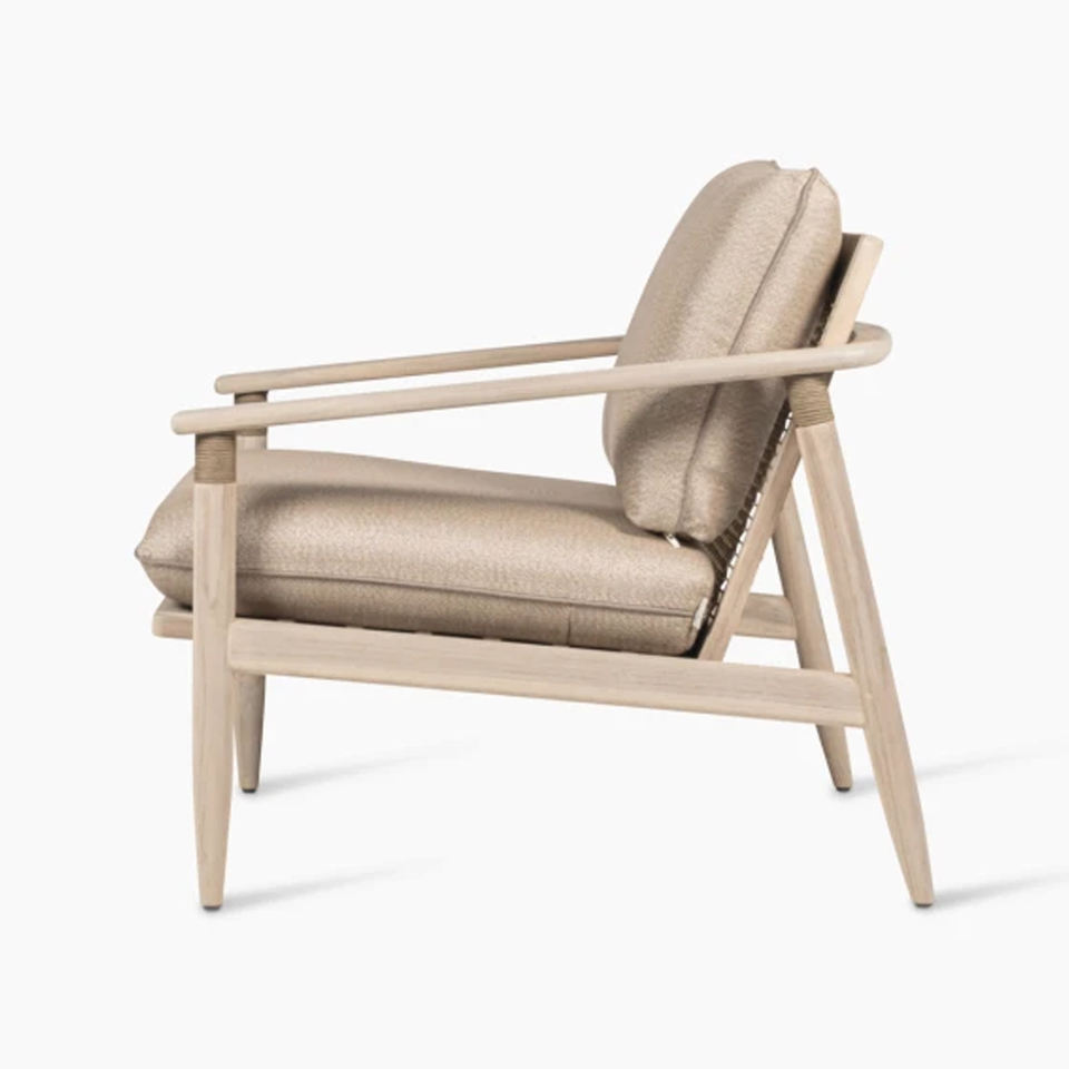 ชุดโซฟาเครื่องทอผ้าหวายสำหรับลานในโรงแรมเฟอร์นิเจอร์ไม้สักสำหรับวิลล่าชุดสวนกลางแจ้งเก้าอี้เลานจ์