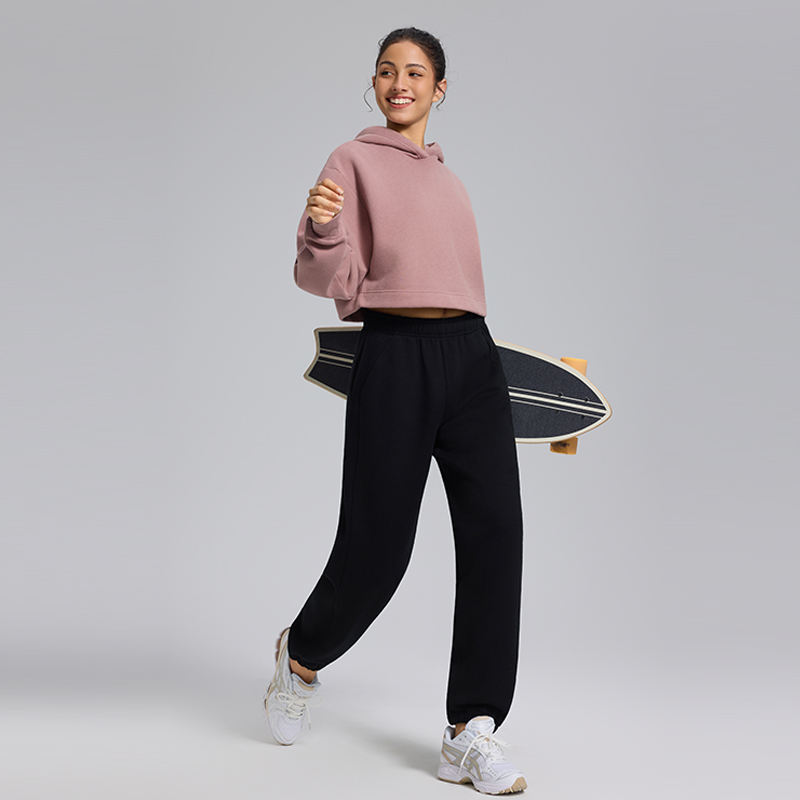เสื้อฮู้ดดี้ผ้าฟลีซคุณภาพพรีเมียมจาก Ville Sports High Street สวมใส่สบาย ทรงหลวม ปลายแขนเสื้อแบบริบ สำหรับผู้หญิง