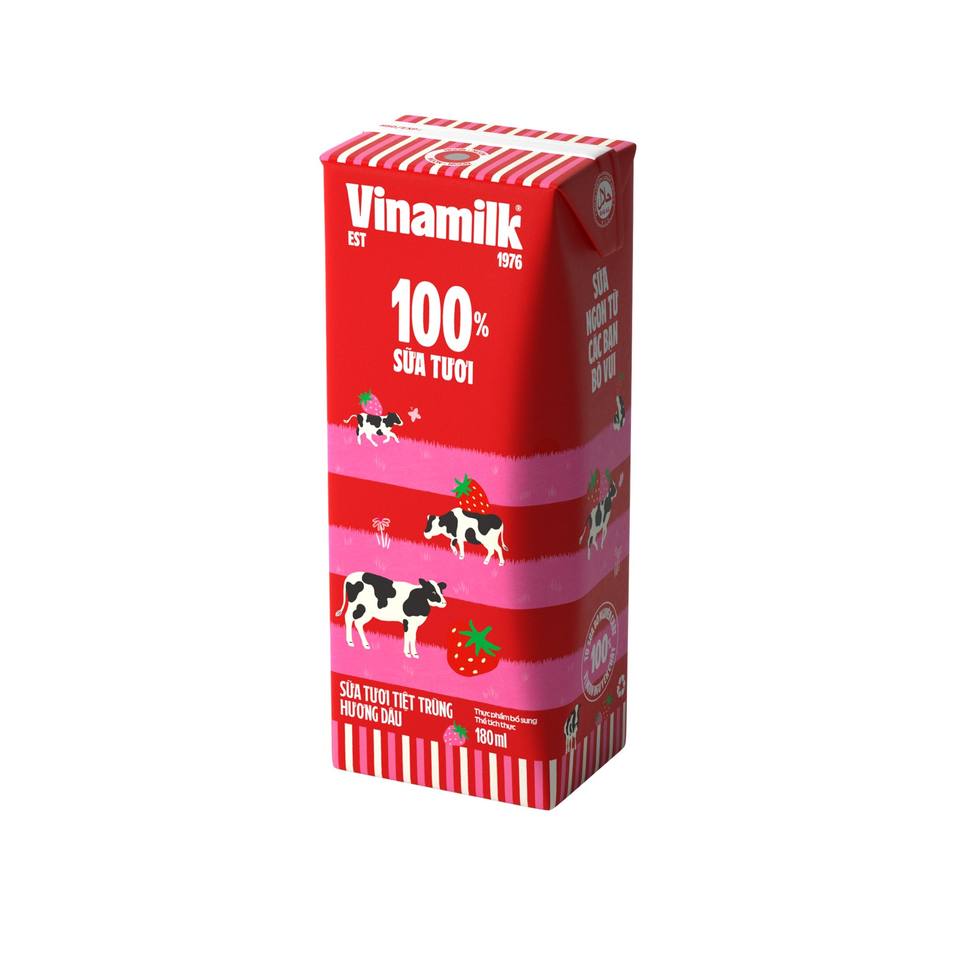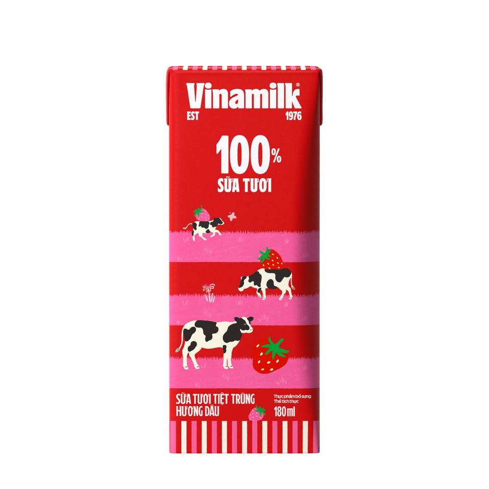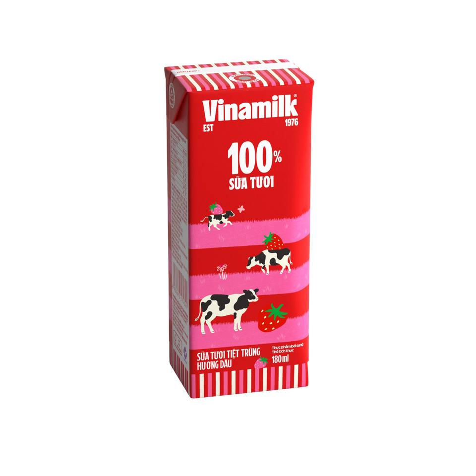 Vinamilk - 100% UHT นมสดรสสตรอเบอร์รี่-180มล. X 48กล่องต่อกล่อง