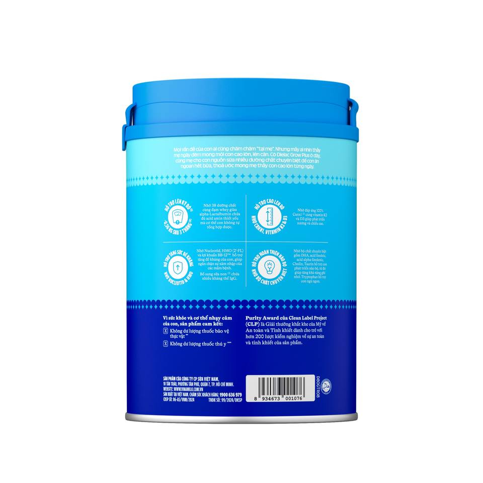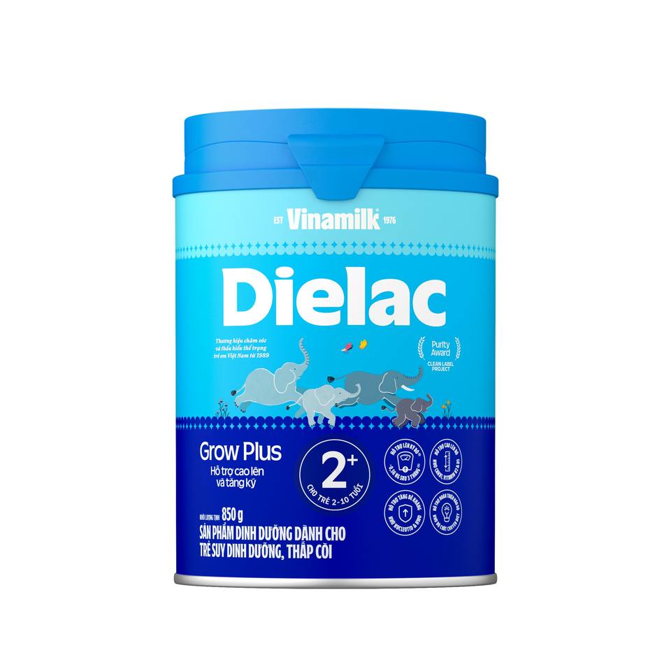 Vinamilk-dielac Grow PLUS-สูตรทารก-ขั้นตอนที่2 + (2-10ปี)-850กรัม x 12กระป๋อง/กล่อง-สำหรับเด็กที่ขาดสารอาหาร
