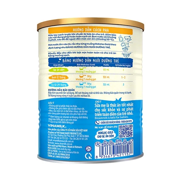 Vinamilk-ridielac ทอง-อาหารเด็ก-ข้าวและนมรส-คุณภาพสูง-ขายส่ง-350กรัม X 24กระป๋องต่อกล่อง GMP ISO halal