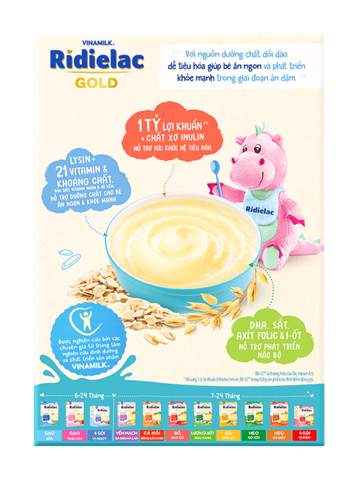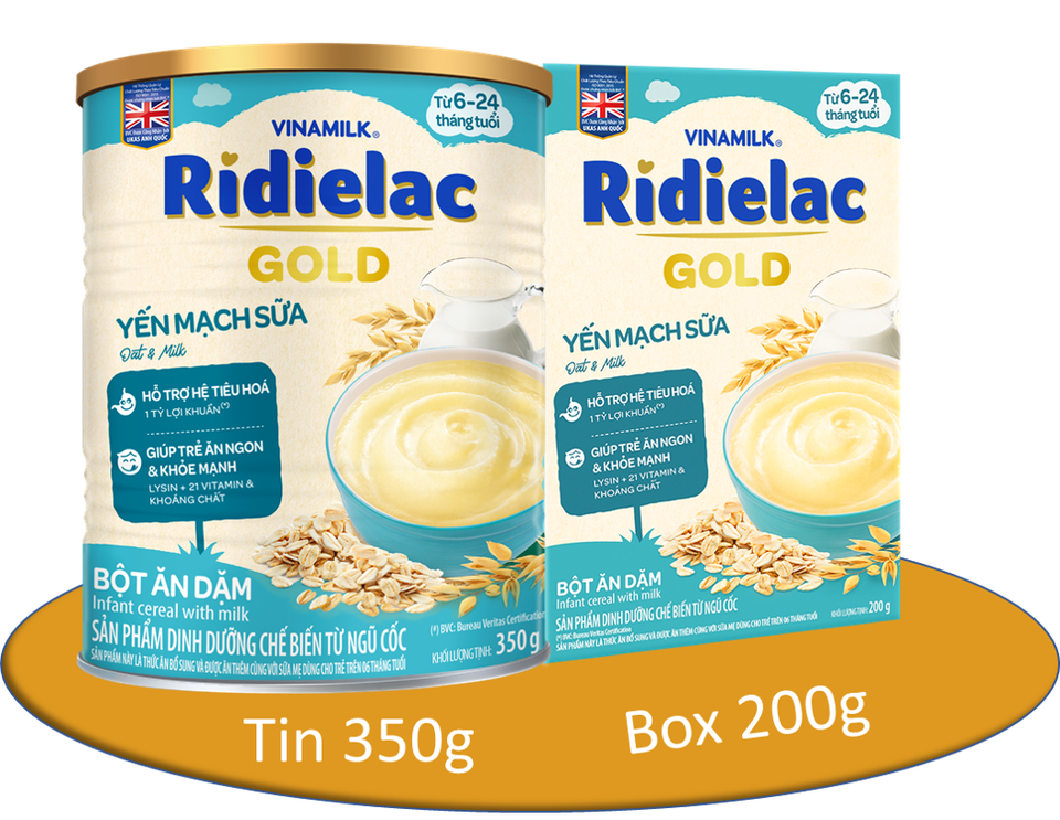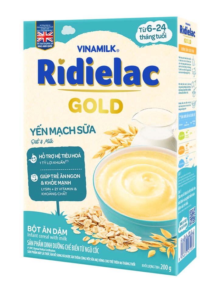 นมวินาเมลค์ ริเดียลัก โกลด์ - อาหารเสริมสำหรับเด็กอายุ 6 เดือนขึ้นไป - รสนมข้าวโอ๊ต - 200 กรัม x 24 กล่องต่อกล่อง