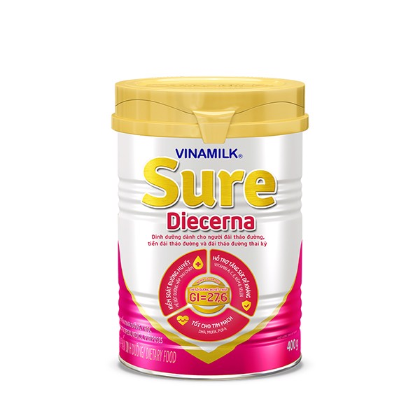 Vinamilk Sure Diecerna-โภชนาการสำหรับผู้ป่วยโรคเบาหวาน-น้ำตาลในเลือดต่ำ GI 400กรัม X 24กระป๋องต่อกล่อง GMP ISO FSSC HALAL BRC
