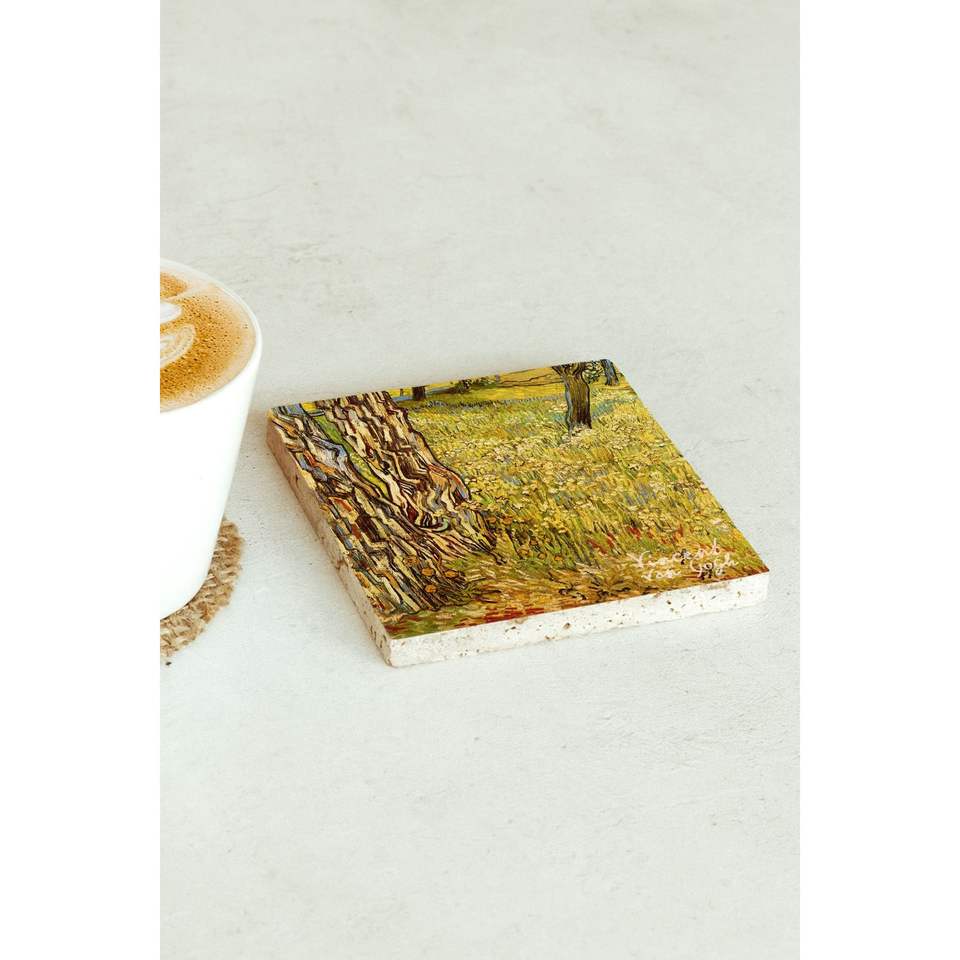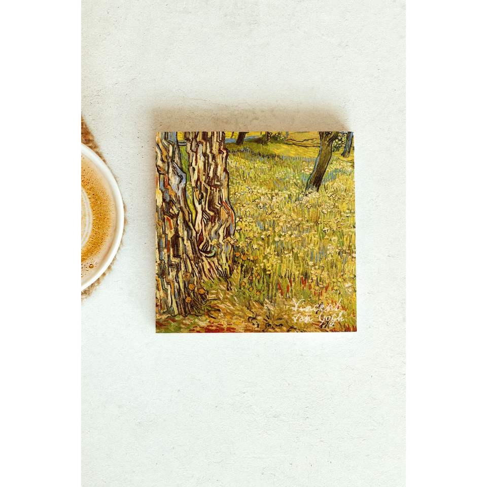 แผ่นรองแก้วลายวินเซนต์ แวนโก๊ะ รุ่นหินเดี่ยว ดีไซน์สี่เหลี่ยม สำหรับธุรกิจ ของขวัญ หรือของแจก