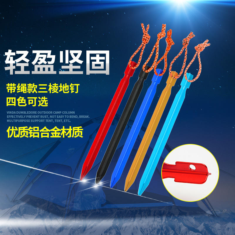 สมอบกอลูมิเนียมอัลลอยด์วินดา ดัมเบิลดอร์ ขนาด 18 ซม. รูปทรงสามเหลี่ยม พร้อมเชือก สำหรับตั้งเต็นท์กลางแจ้ง
