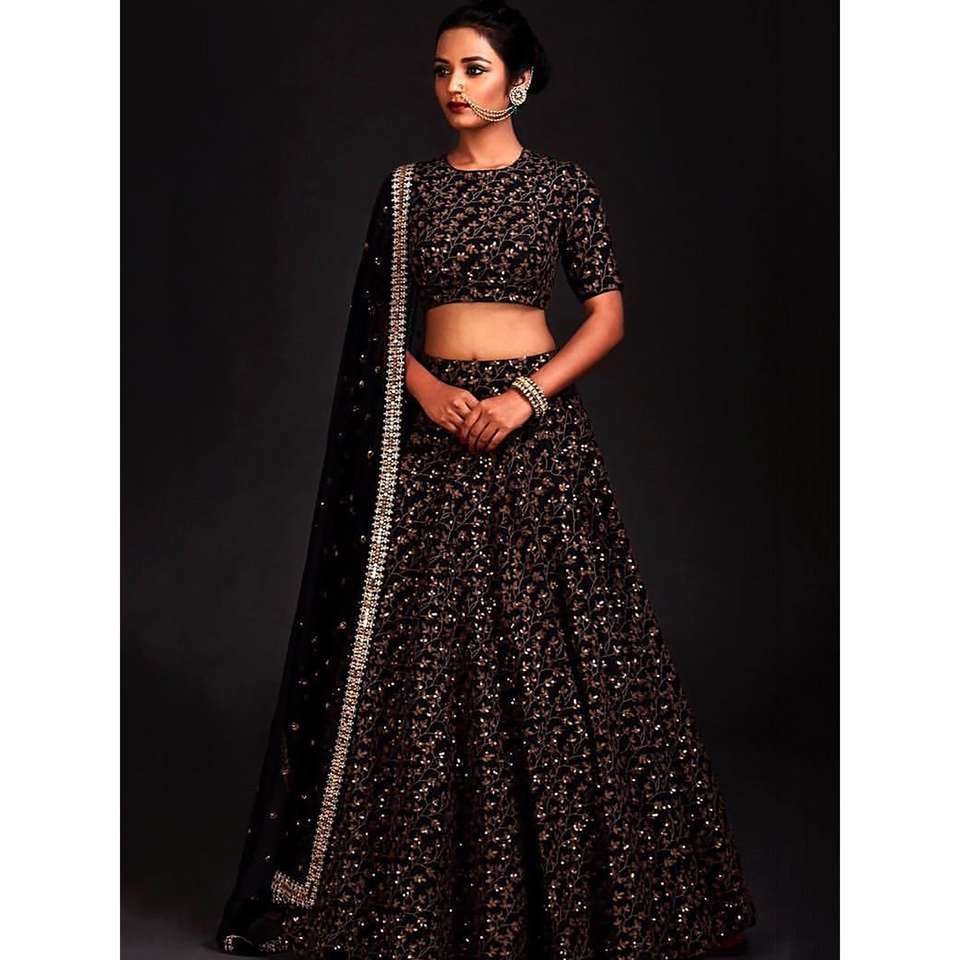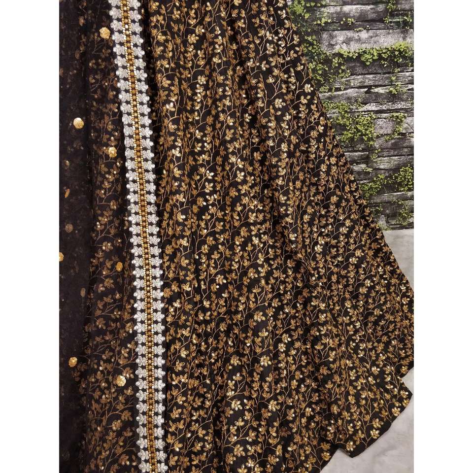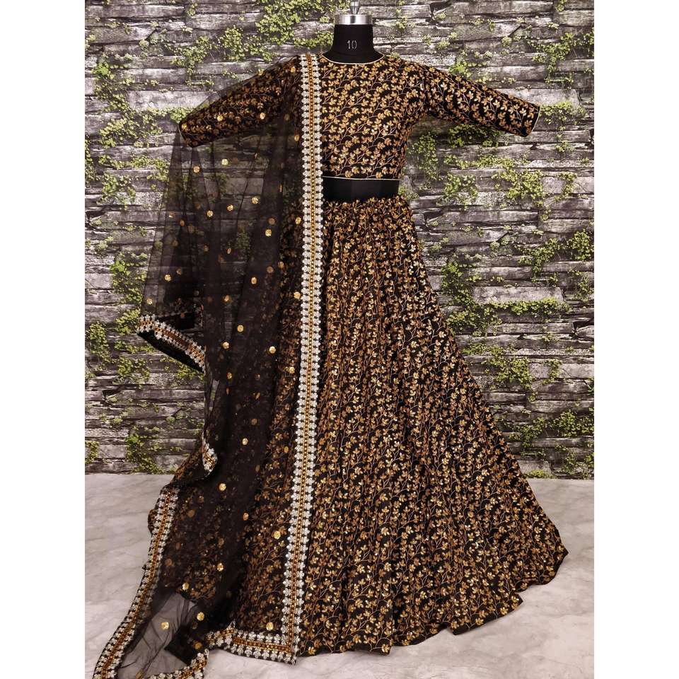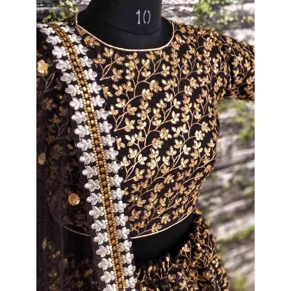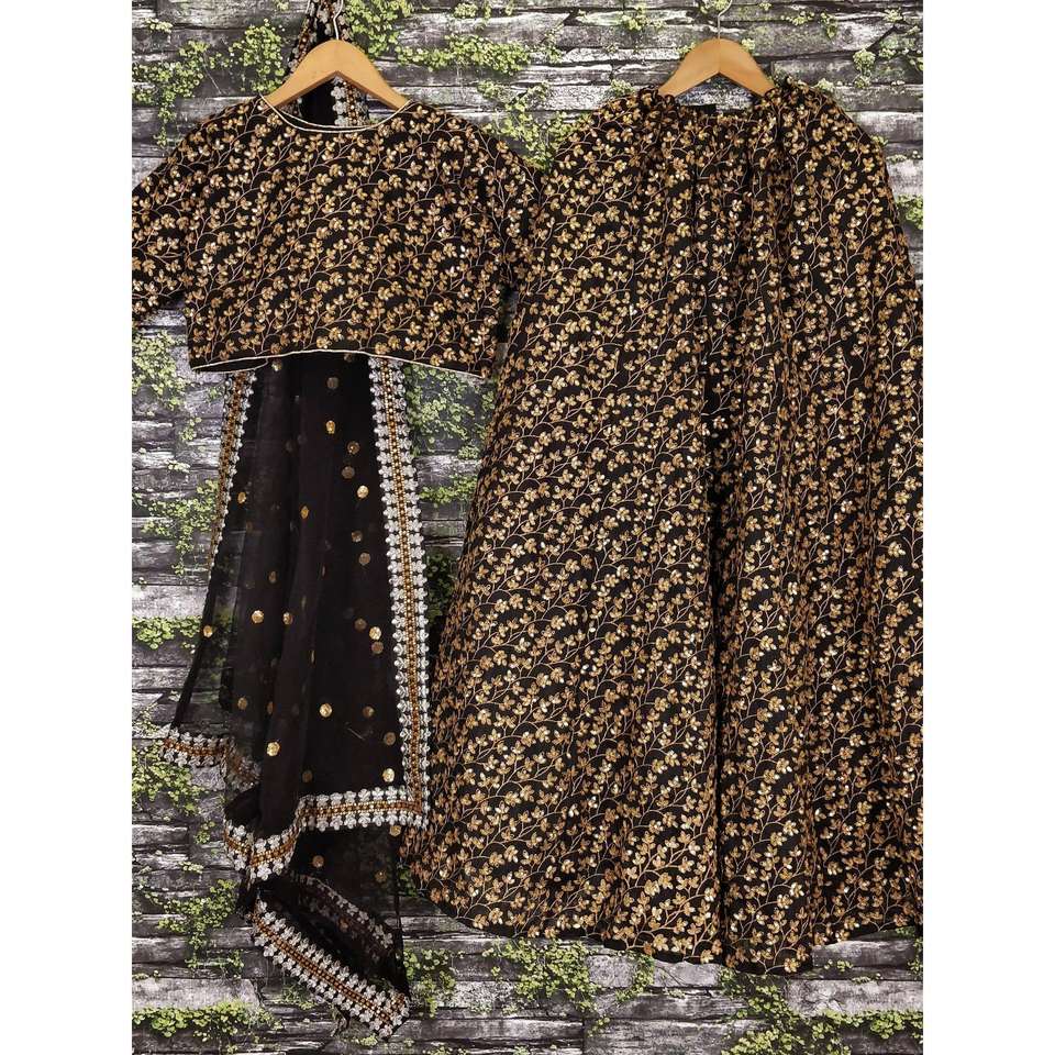 ชุดผ้าไหมสีดำปักเลื่อมสีทองลายเถา