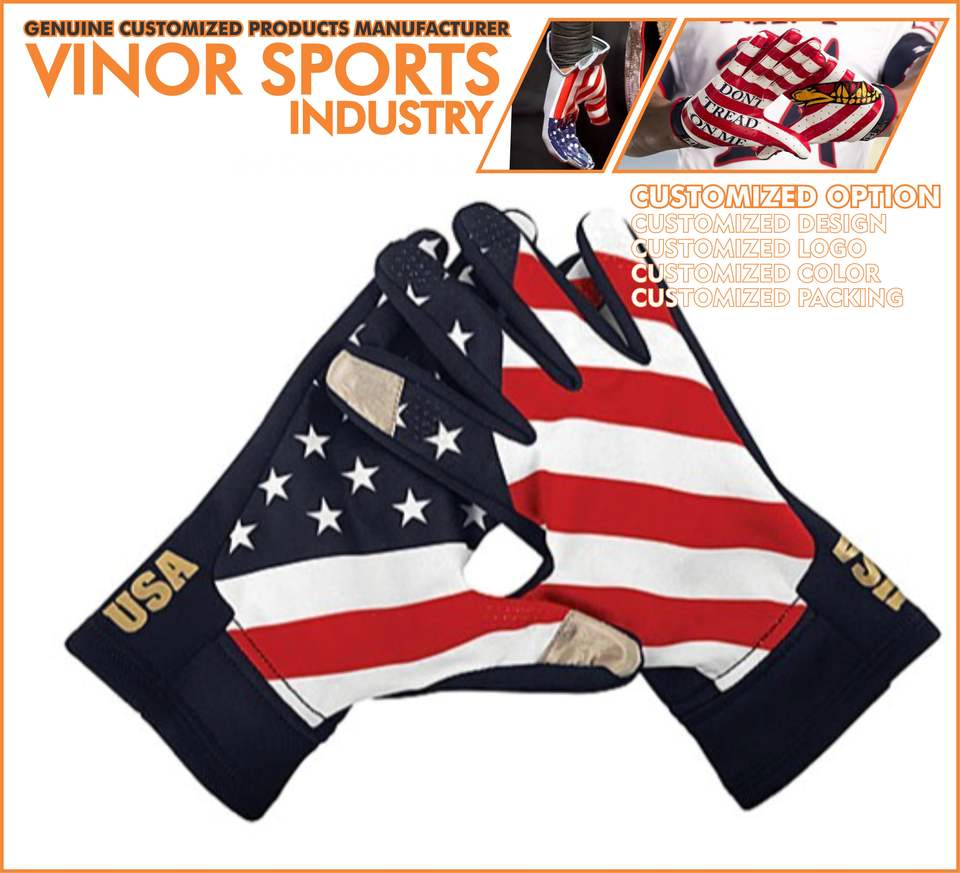 ถุงมือกีฬา vinor ออกแบบได้ตามต้องการสำหรับผู้ใหญ่และเด็กระบายอากาศได้อเมริกันฟุตบอลมีไซส์ใหญ่พิเศษ