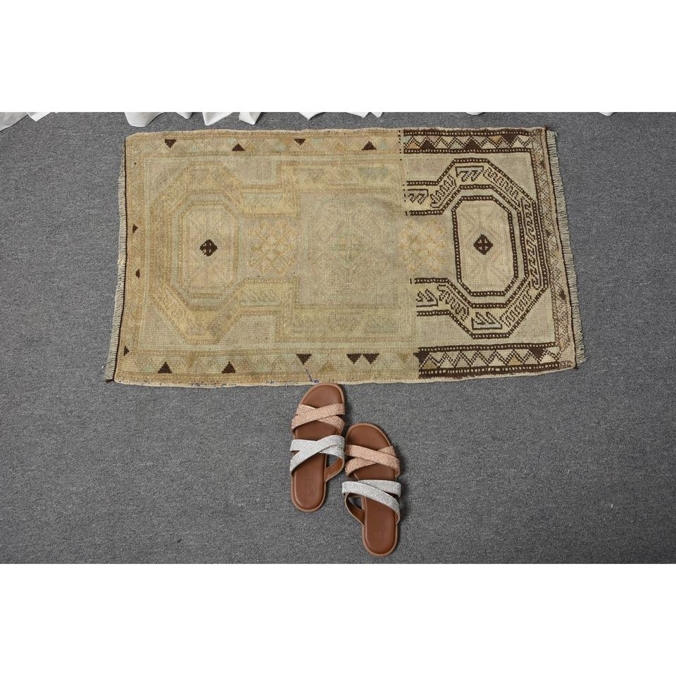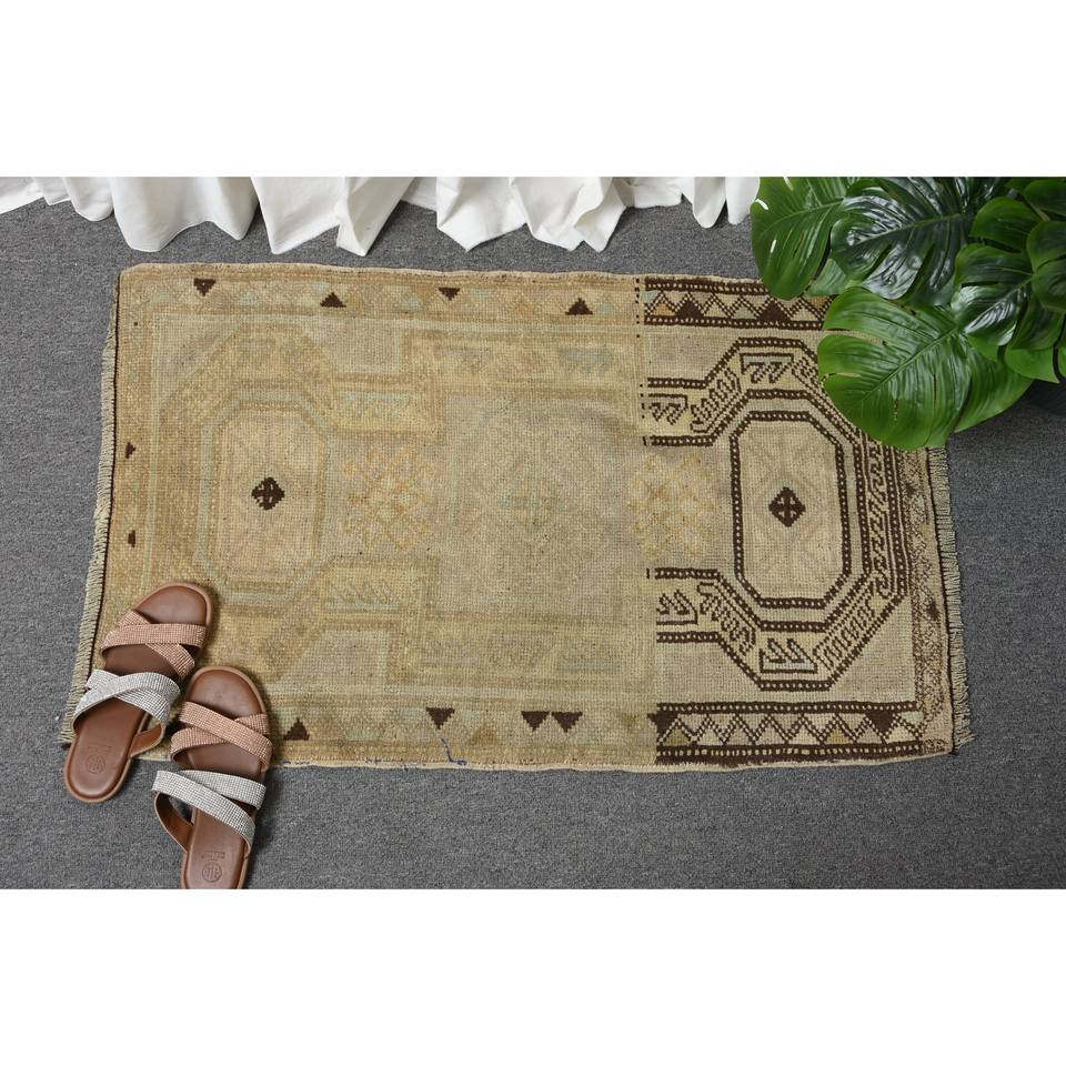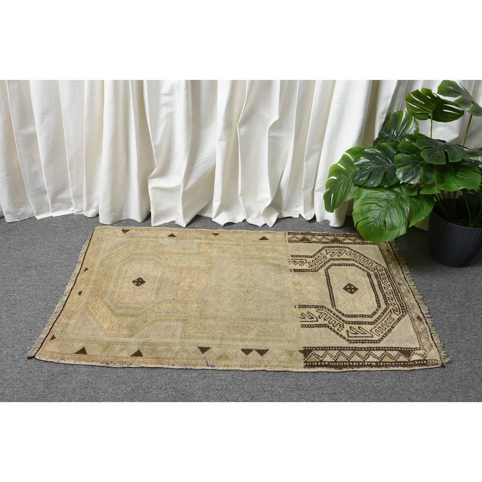 พรมขนสัตว์ตุรกีแบบวินเทจสีเบจ1.9x3ft รูปแบบการเย็บปะติดปะต่อกันสานแบบแบนสำหรับตกแต่งห้องนั่งเล่นด้วยยางพารา