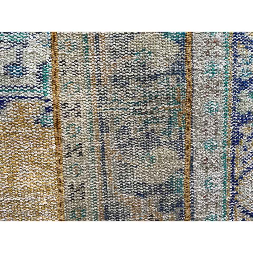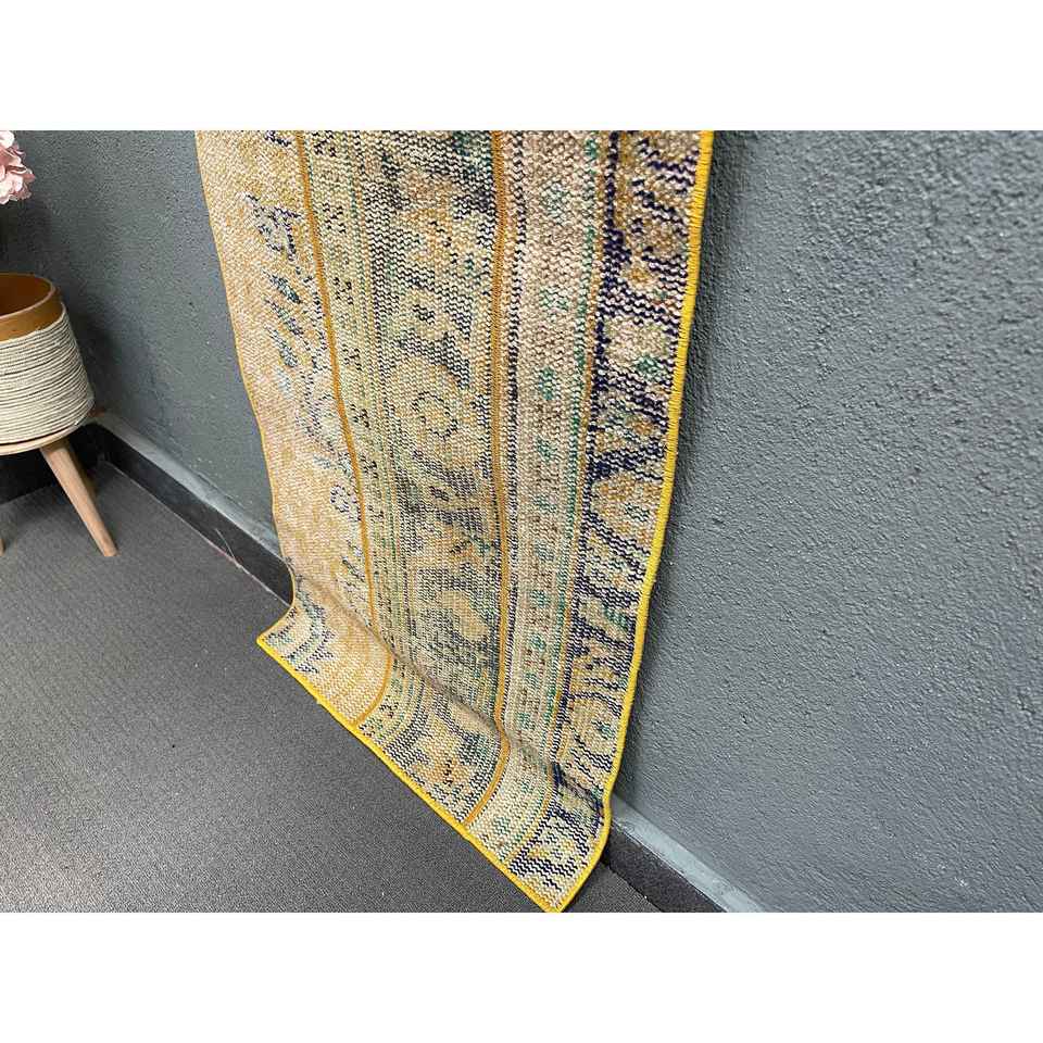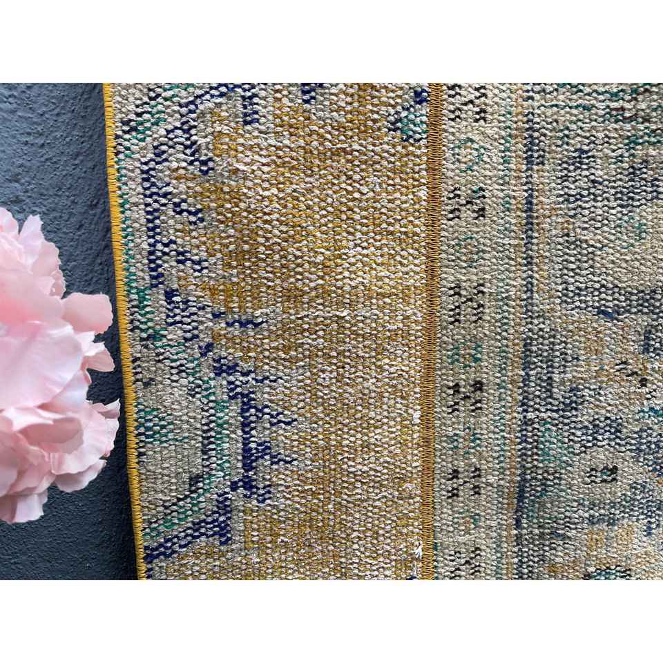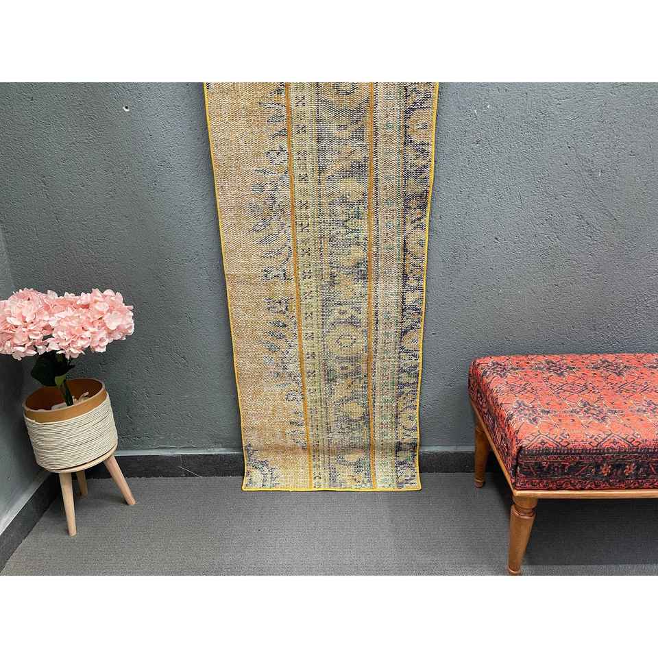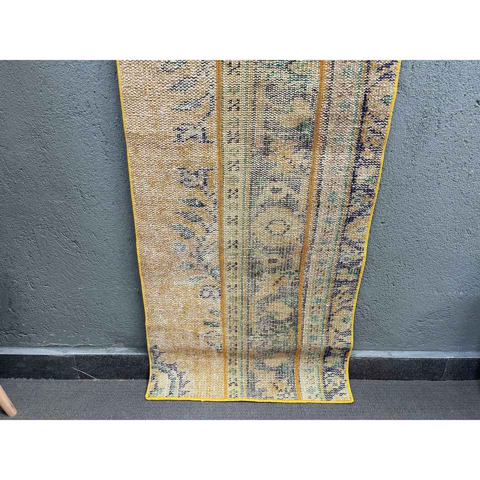 พรมวินเทจขนาด 1.9x6.4 ฟุต, พรมตุรกีแบบ Runner, พรมลายดอกไม้สีเหลืองน้ำเงิน