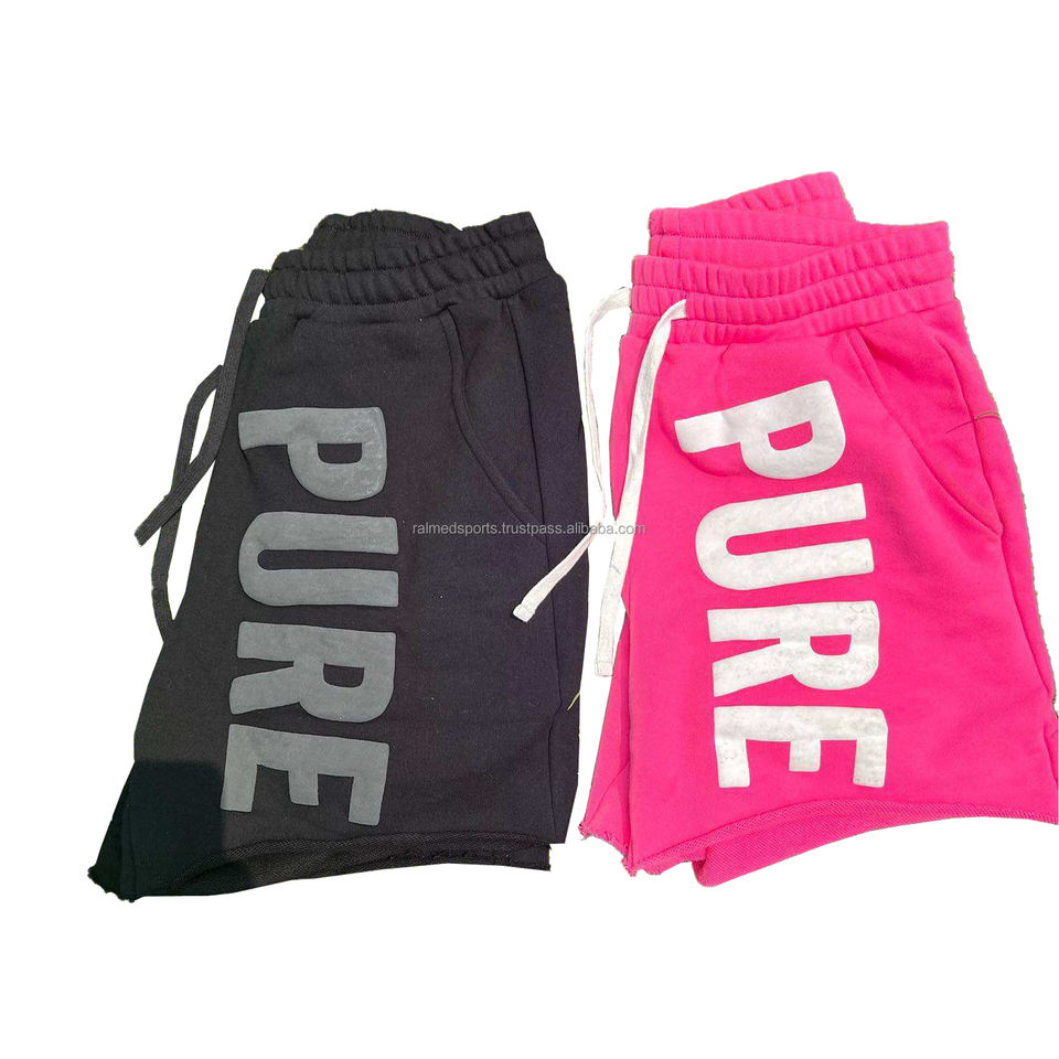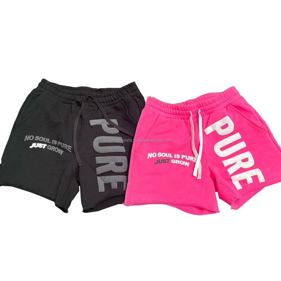กางเกงขาสั้นซับเหงื่อผ้าฝ้าย100% วินเทจสำหรับผู้ชายกางเกงขาสั้นผ้าฝรั่งเศสเทอร์รี่ฟอกสีกรด