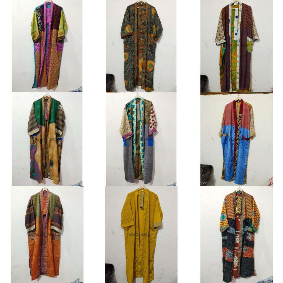 ชุดกิโมโนผ้าไหมซารีวินเทจ 100% สำหรับผู้หญิง งานแฮนด์เมด ตกแต่งด้วยผ้าปะติดสไตล์โบโฮ จีน หรูหรา สง่างาม เหมาะสำหรับใส่ในฤดูร้อน คอวี ปิดด้วยเชือกผูก