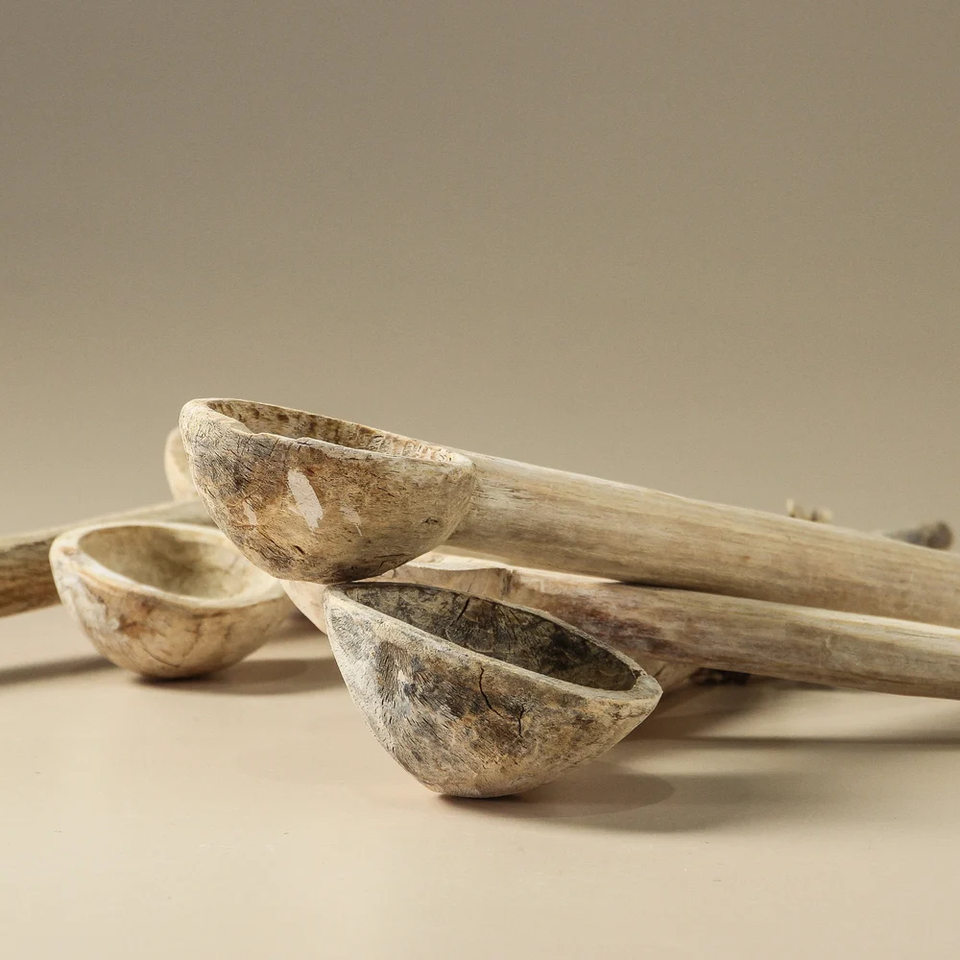 ช้อนไม้สักอินเดียโบราณ ขนาด 14 นิ้ว อายุ 60-80 ปี ยี่ห้อ KAMAL ART CRAFT เป็นมิตรกับสิ่งแวดล้อม ปลอดภัยสำหรับอาหาร ไม่ลื่น น้ำหนักเบา เหมาะสำหรับการจิ้ม