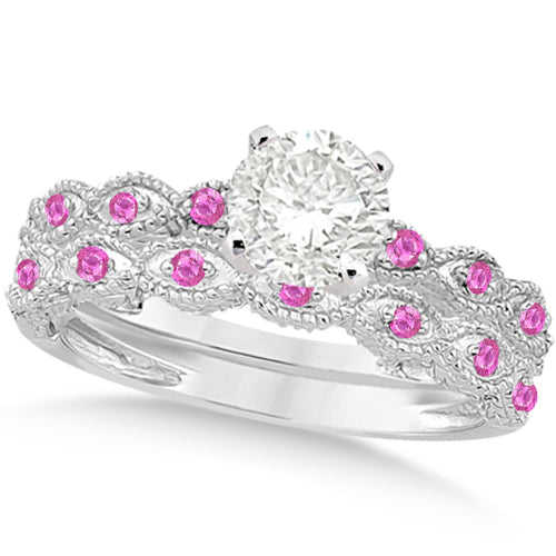 ชุดเครื่องประดับเจ้าสาวทองคำขาว 14k วินเทจ ประดับเพชรทรงเหลี่ยมมรกตและไพลินสีชมพู 1.70 กะรัต สำหรับงานปาร์ตี้