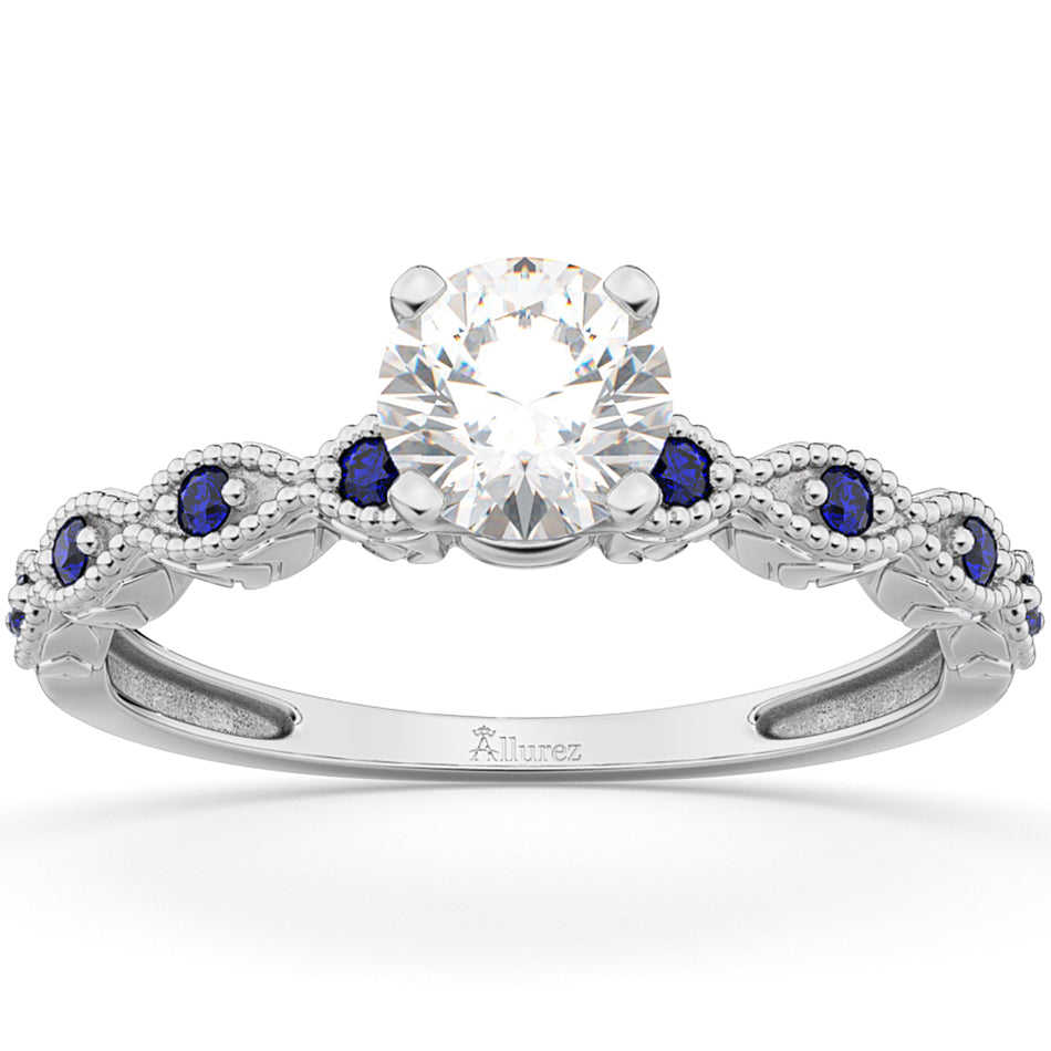 แหวนหมั้นทองคำขาว 14k สไตล์วินเทจสำหรับผู้หญิง ประดับเพชร 1.48 กะรัต และพลอยแซฟไฟร์สีน้ำเงินทรงกลม 8 เม็ด แบบฝังหนามเตย พลอยธรรมชาติและพลอยเพาะเลี้ยง