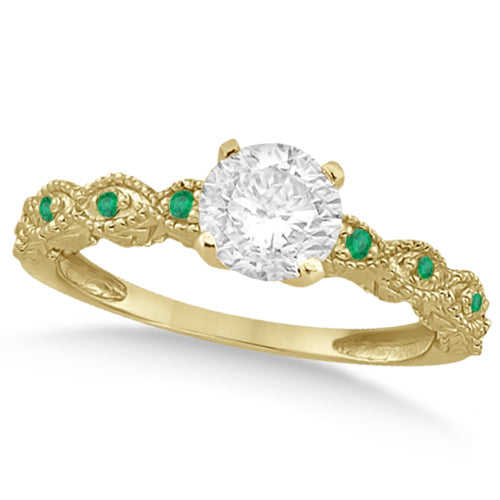 ชุดเครื่องประดับทองคำแท้ 14k สีเหลืองสไตล์วินเทจ ประดับเพชร 1.20 กะรัต และมรกต สำหรับงานแต่งงาน งานหมั้น หรือเป็นของขวัญวันครบรอบ