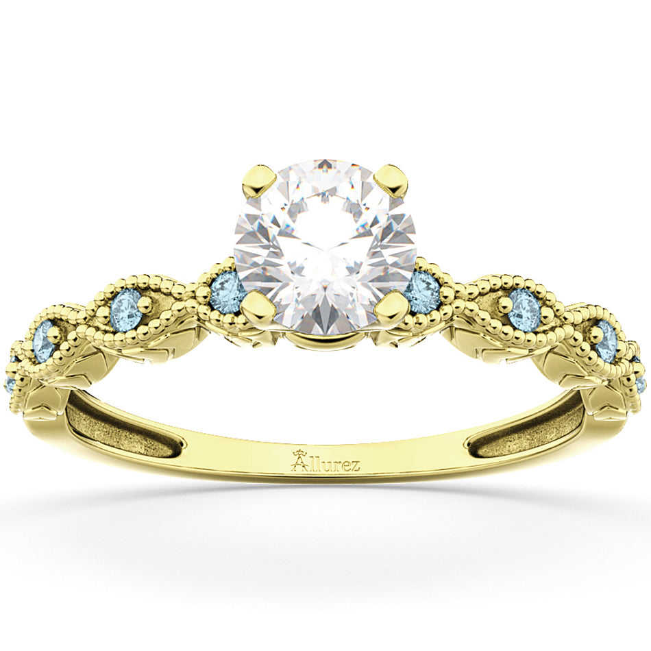 แหวนหมั้นทองคำแท้ 14k สีเหลือง ประดับพลอยอะความารีน 0.50 กะรัต ชุบโรเดียม พร้อมพลอยรูปทรงเจ้าหญิง มาร์ควิส มรกต และทับทิม