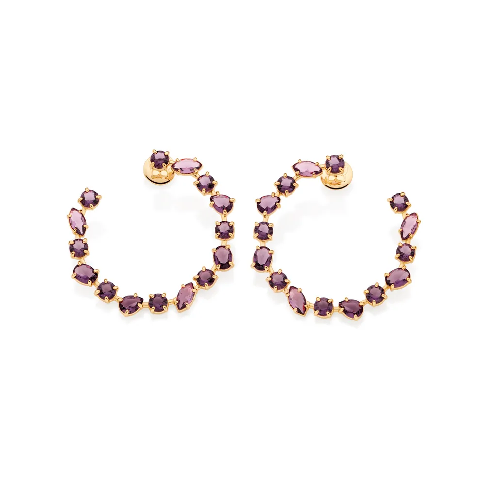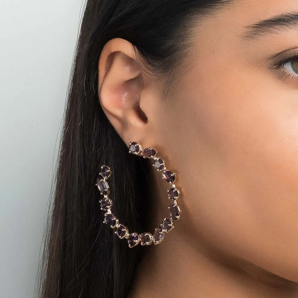 ต่างหูห่วงทำมือชุบทองคำ 18k สไตล์วินเทจ ประดับคริสตัลสีม่วง Purple Dreams รับรองโดย IGI เครื่องประดับแฟชั่นงานแต่งงานสำหรับผู้หญิง ผลิตจากโลหะผสม