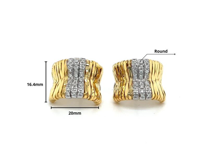 ต่างหูห่วงแบบแท่งสองสีทอง18K สไตล์วินเทจประดับเพชรทรงกลมมีลายพิมพ์ orlandini ltarine ทำขึ้นสำหรับแฟชั่นสตรี
