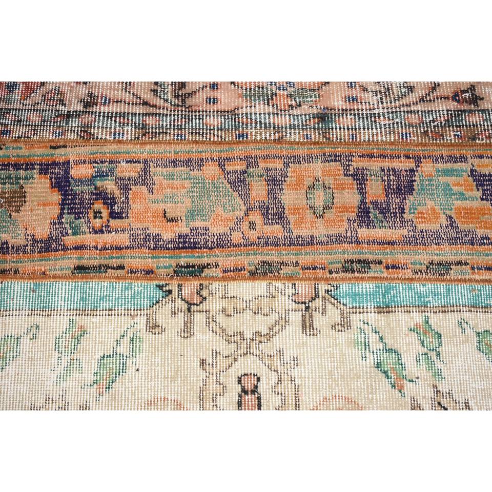 พรมขนสัตว์ตุรกีสีเบจสีส้ม3.7ft วินเทจ2.2ชิ้นแบบสานเรียบการเย็บปะติดปะต่อกันสำหรับตกแต่งห้องนั่งเล่นความกว้าง4เมตรด้านหลังเป็นยาง
