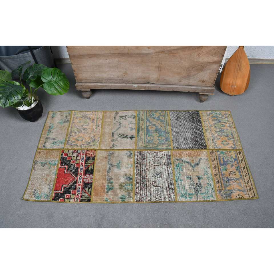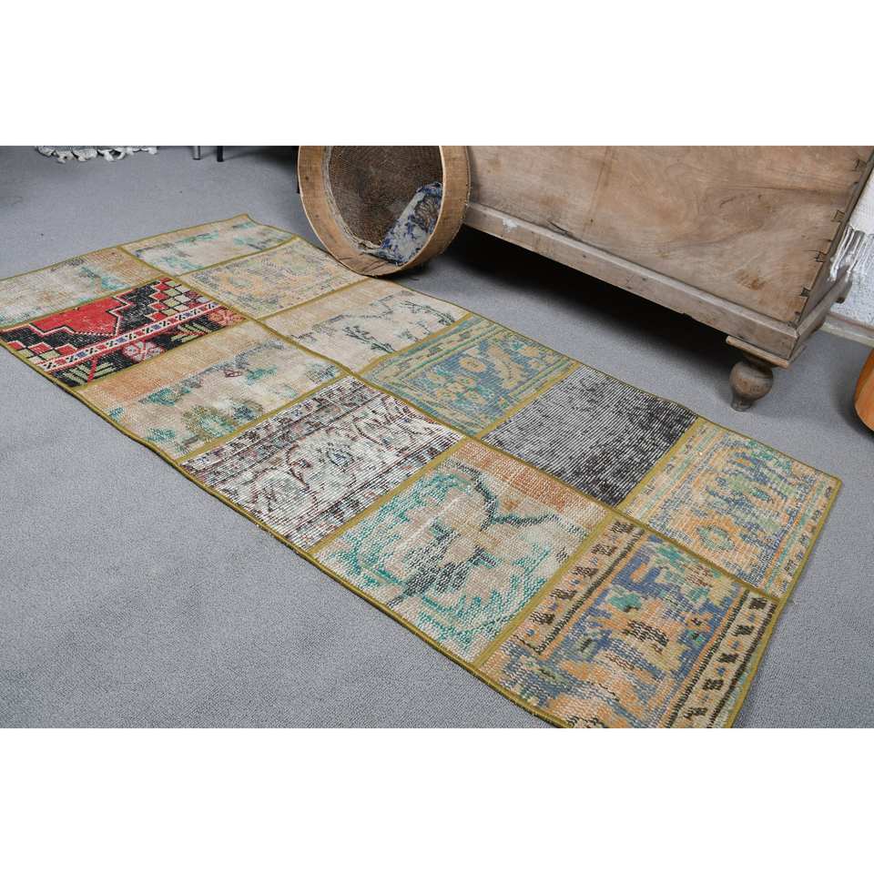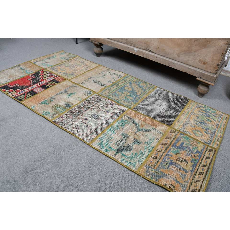 พรมขนสัตว์ตุรกีสีเบจ4.6ft วินเทจ2.3ชิ้นงานแฮนด์เมดพื้นที่ขนาดใหญ่แบบคลาสสิกงานปะติดแบบนามธรรมสำหรับตกแต่งห้องโถงห้อง