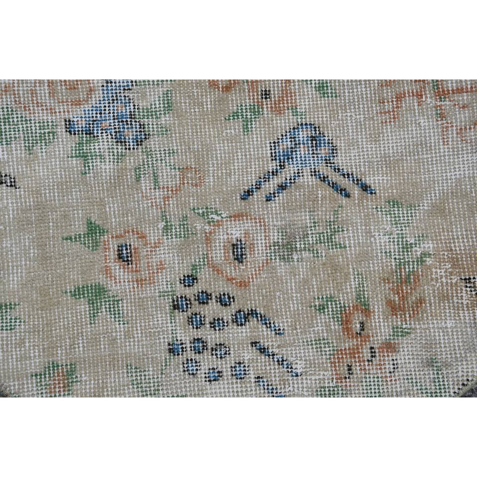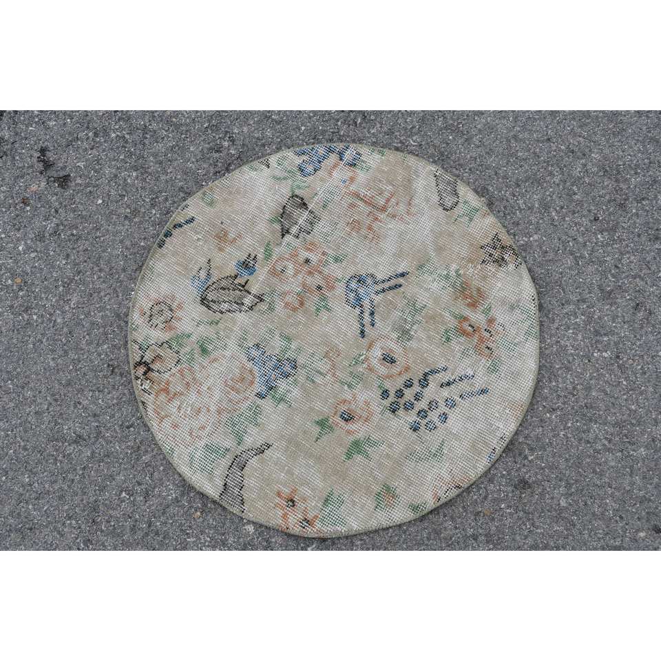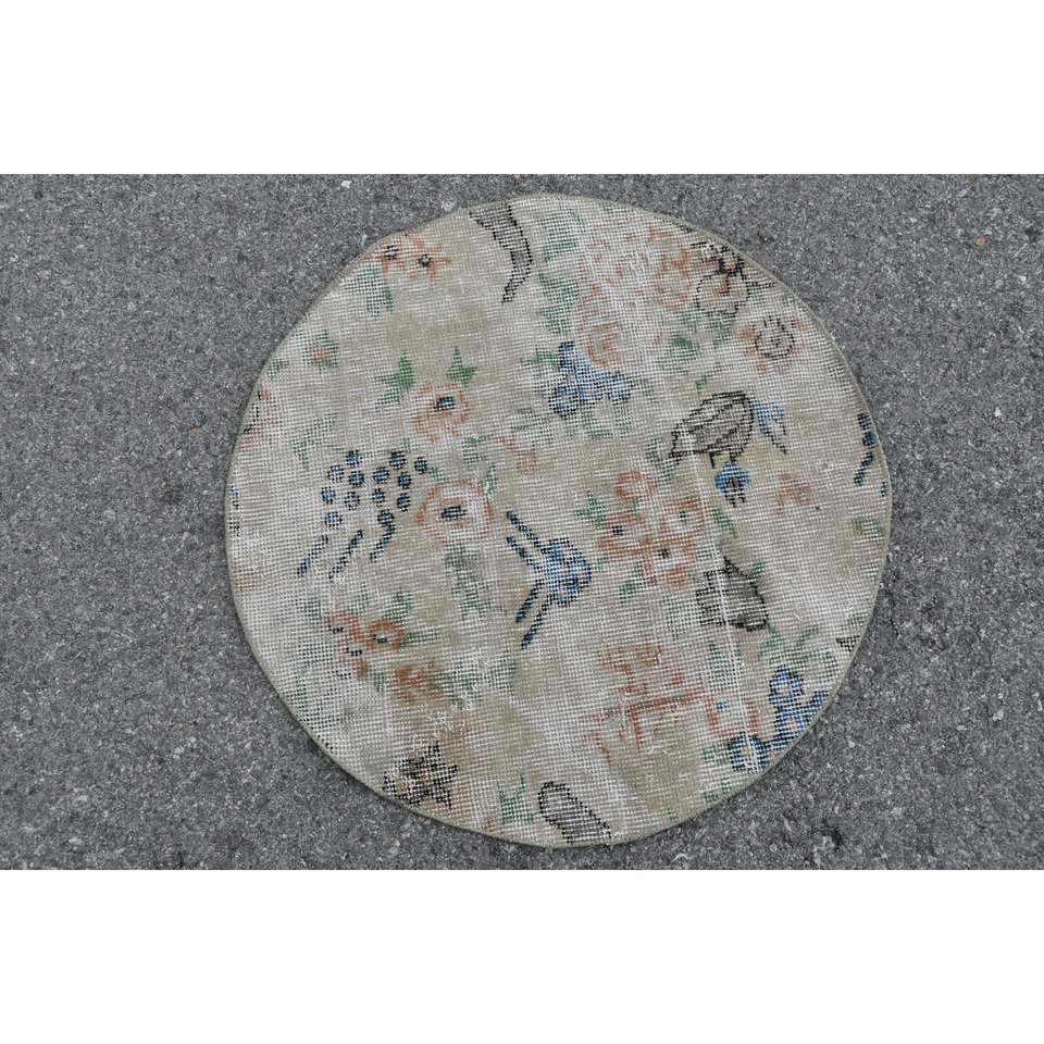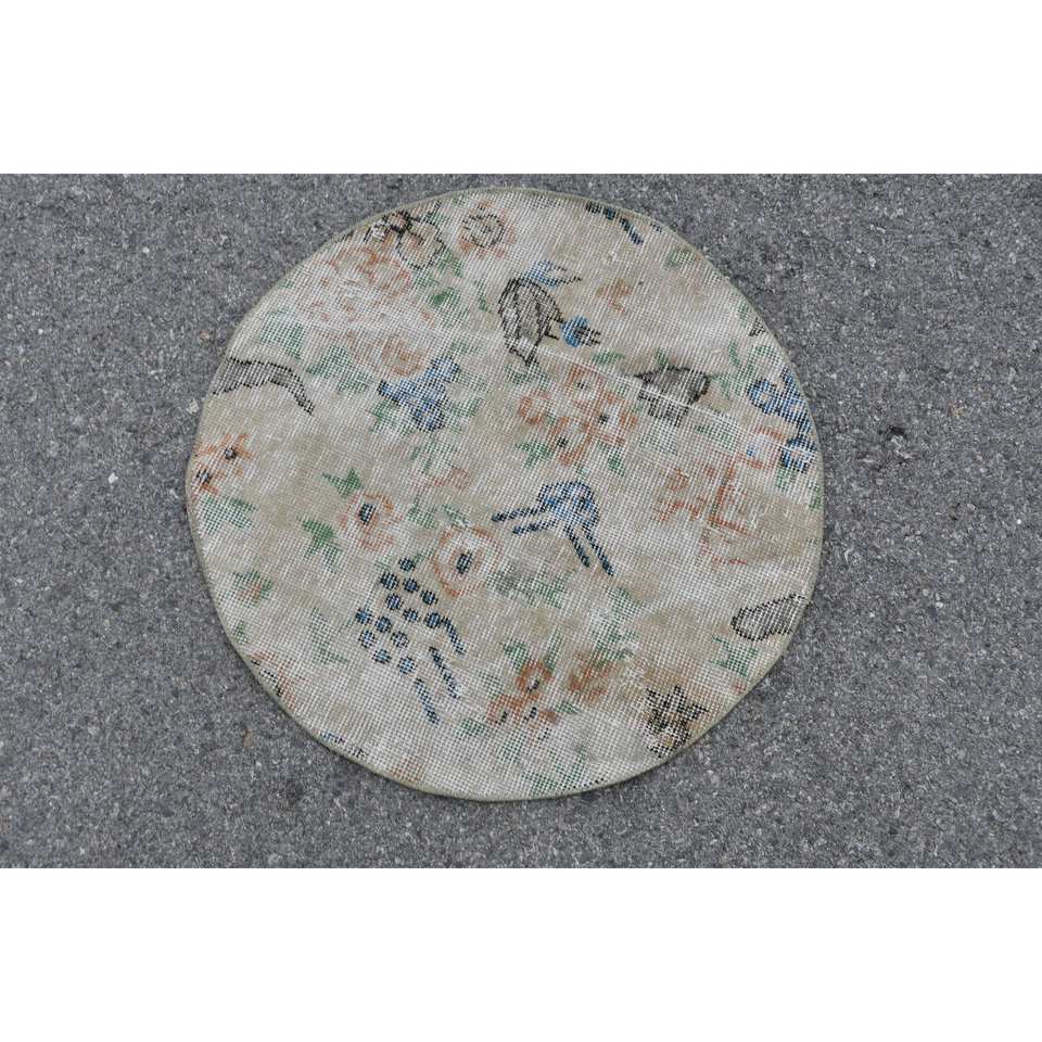 พรม2.3x2.3ft เบจตุรกีวินเทจขนสัตว์แฮนด์เมดพื้นที่ขนาดใหญ่งานเย็บปะติดโถงทางเดินเป็นรูปสี่เหลี่ยมผืนผ้าสำหรับตกแต่งห้อง