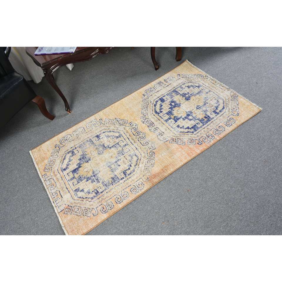 พรมขนแกะตุรกี2.5 x 4.7ft วินเทจสีเบจสีฟ้าผ้าต่อเรียบทอเป็นกองกลางเป็นมิตรกับสิ่งแวดล้อมสำหรับห้องรับประทานอาหาร