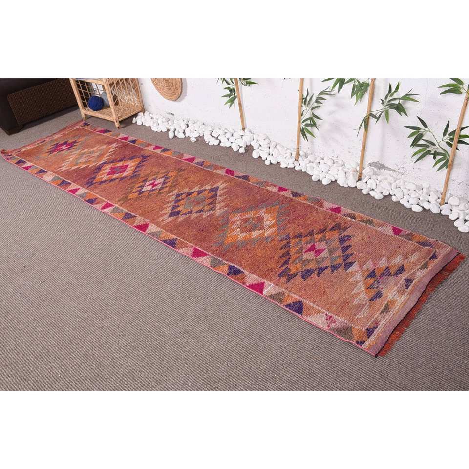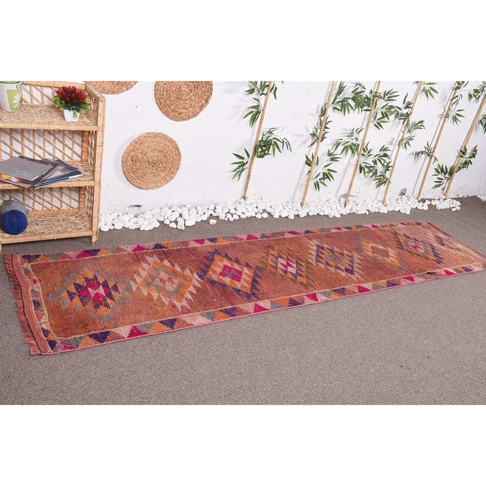 พรม2.5ft สไตล์วินเทจ x 10FT ลายถักขนแกะสีส้มพร้อมแผ่นยางรองหลังเพื่อความอบอุ่นและชวนให้ตกแต่งบ้าน
