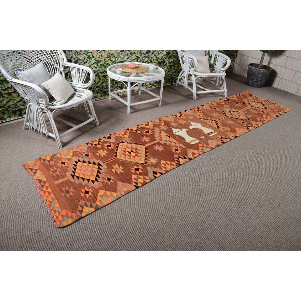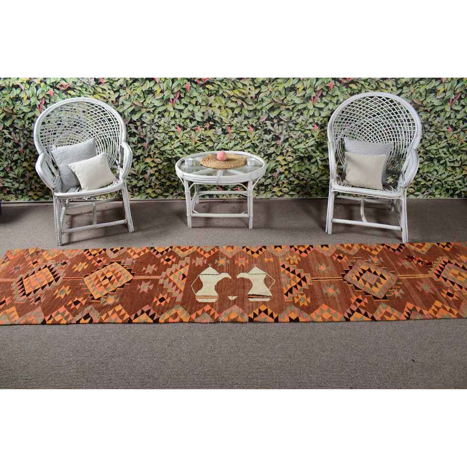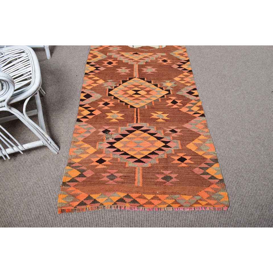 พรมวินเทจขนาด 2.6x11 ฟุต, พรมตุรกีแบบยาว, พรมลายตารางสีน้ำตาล