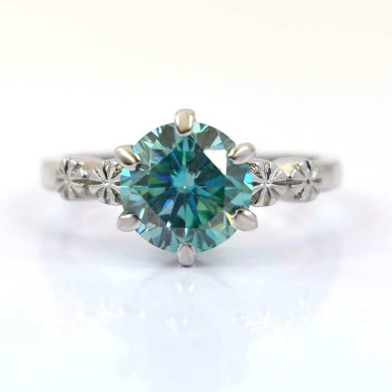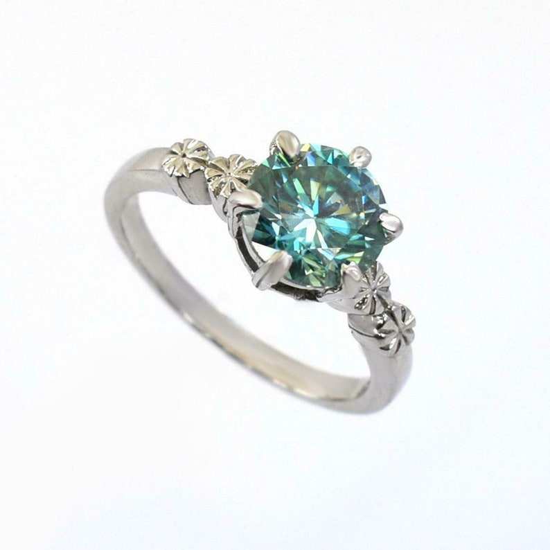 แหวนหมั้นเพชรมอยส์ซอไนต์2กะรัตวินเทจอาร์ตเดคโคสีเขียวตัดของขวัญครบรอบผู้หญิงแหวนวินเทจไม่ซ้ำใคร