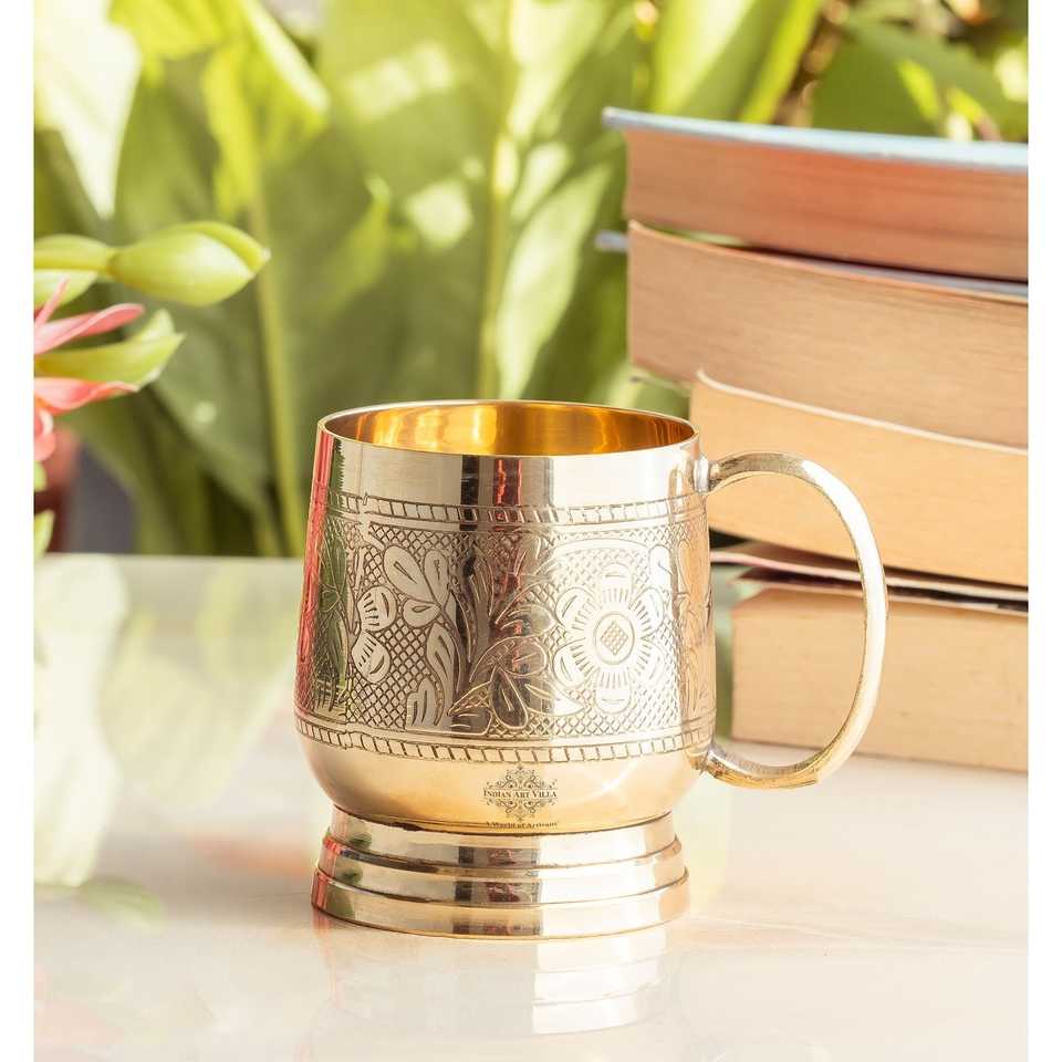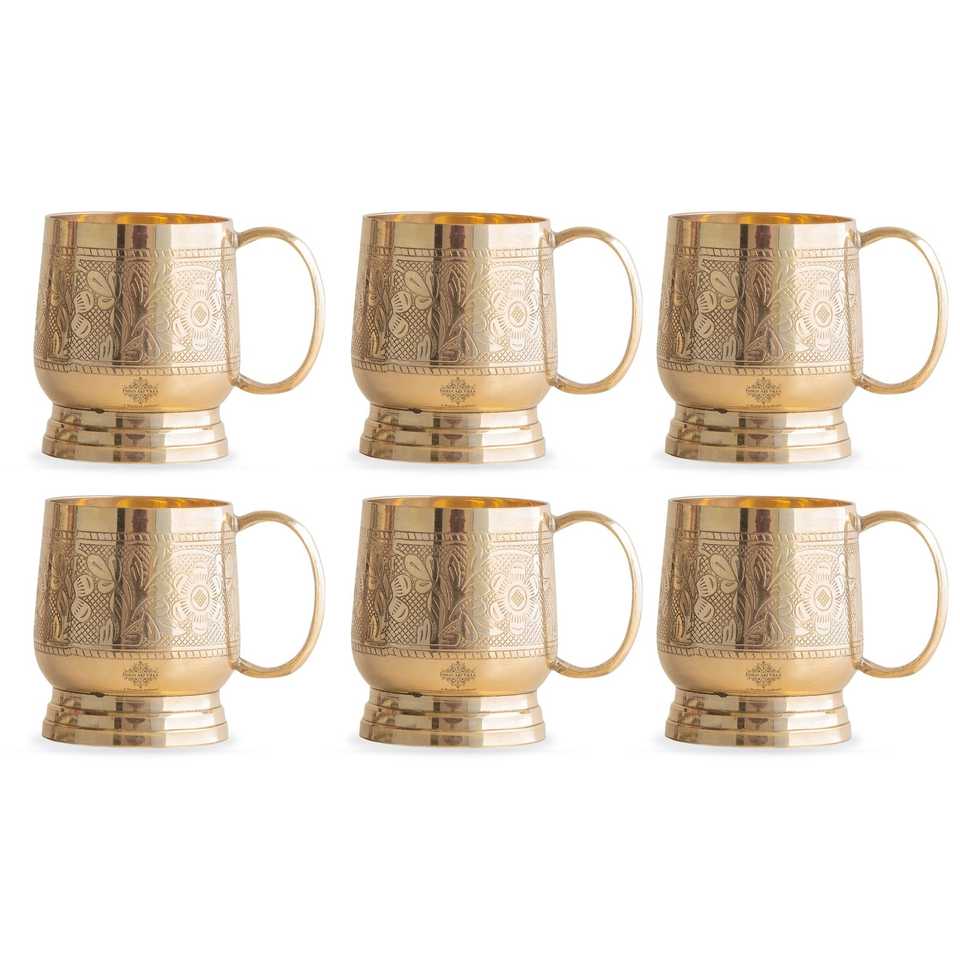 แก้วทองเหลืองแท้ลายนูน ขนาด 200 มล. พร้อมหูจับ สำหรับงานแต่งงาน