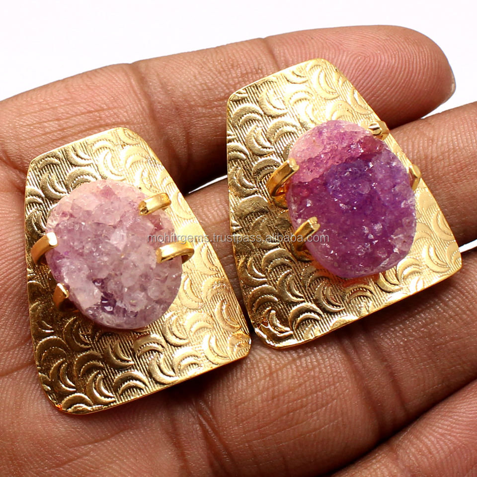 ต่างหูทอง22กะรัตสไตล์วินเทจต่างหูมุกสแตนเลสทรงรีสำหรับงานแต่งงาน
