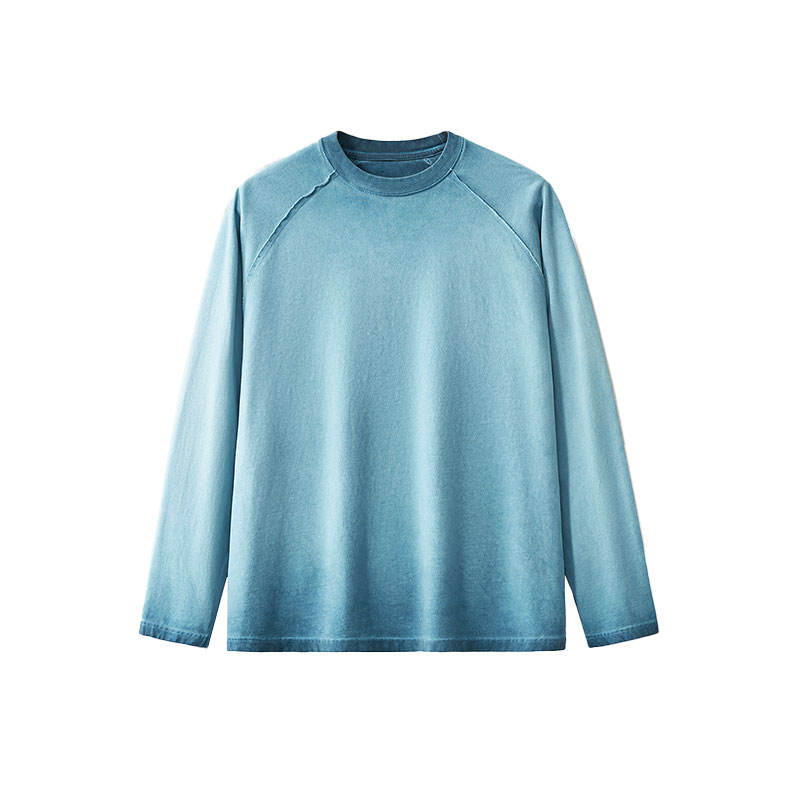 เสื้อยืดแขนยาวของผู้ชายย้อมสีสกปรกผ้าย้อมสี270GSM แบบสวมหัวย้อนยุคโลโก้ตามสั่ง