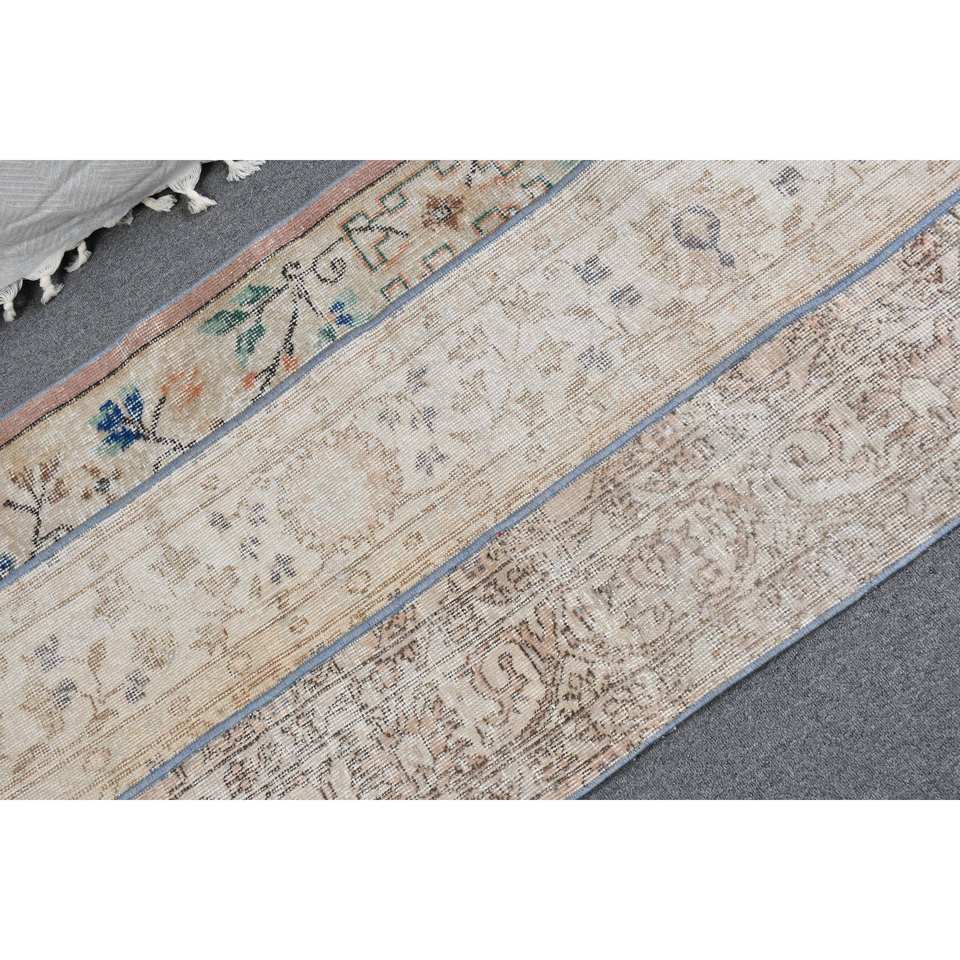 พรมขนสัตว์ตุรกี2x4.5ft วินเทจดีไซน์เย็บปะติดปะต่อกันสีเบจและน้ำตาลถักทอแบนเทคนิคการตกแต่งห้องนั่งเล่นกว้าง4เมตร