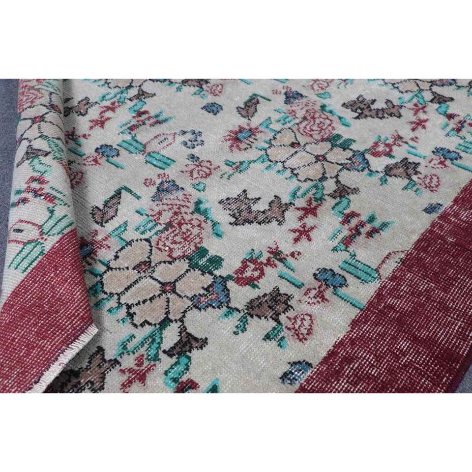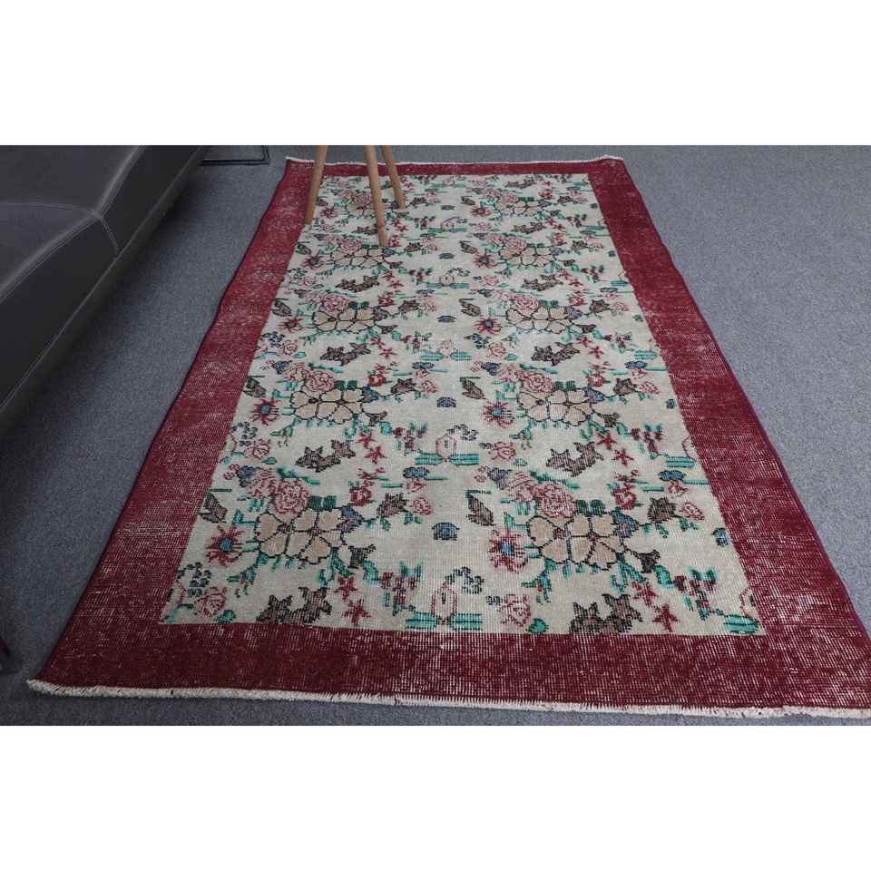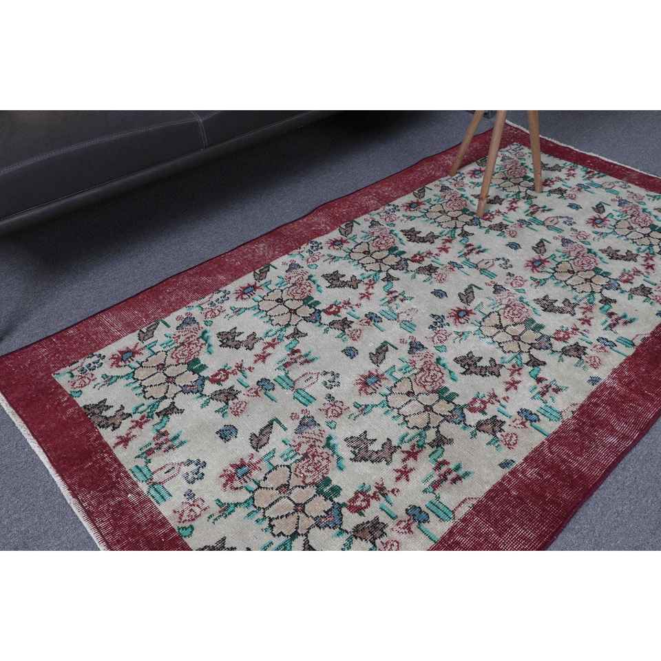 พรมวินเทจขนาด 3.6x6.6 ฟุต พรมตุรกี พรมลายตารางสีแดงทำจากขนสัตว์