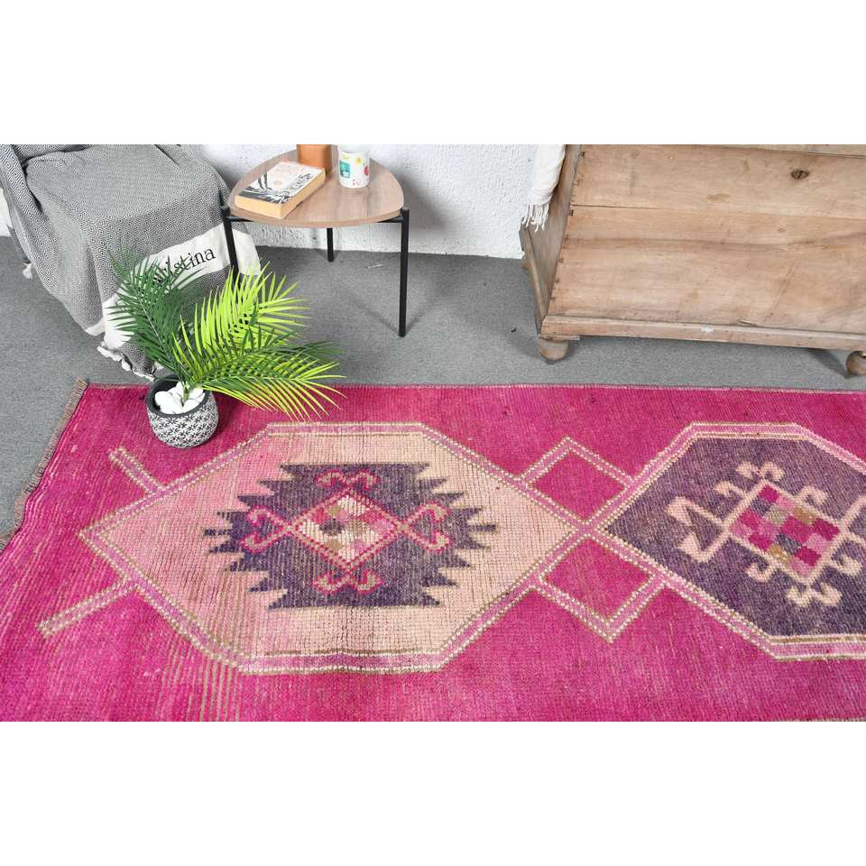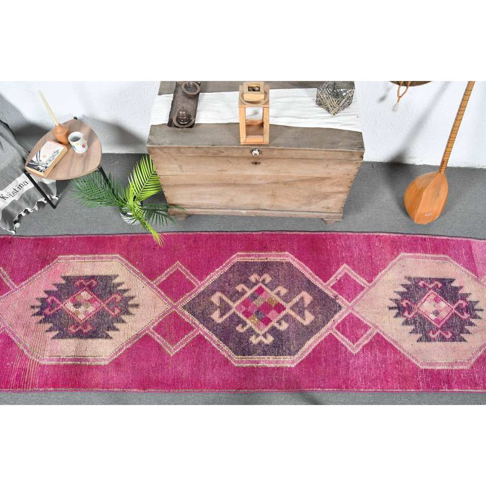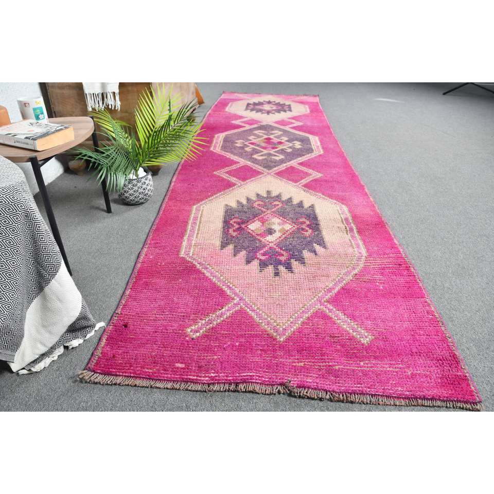 Vintage 31 X 108 ft Pink Purple Turkish Wool Area Rug Classic Large Set Latex Backing for Living Room Decor for Teens' Hallway
