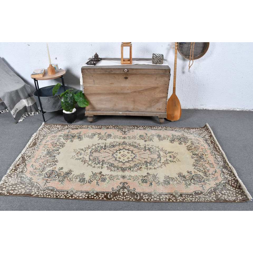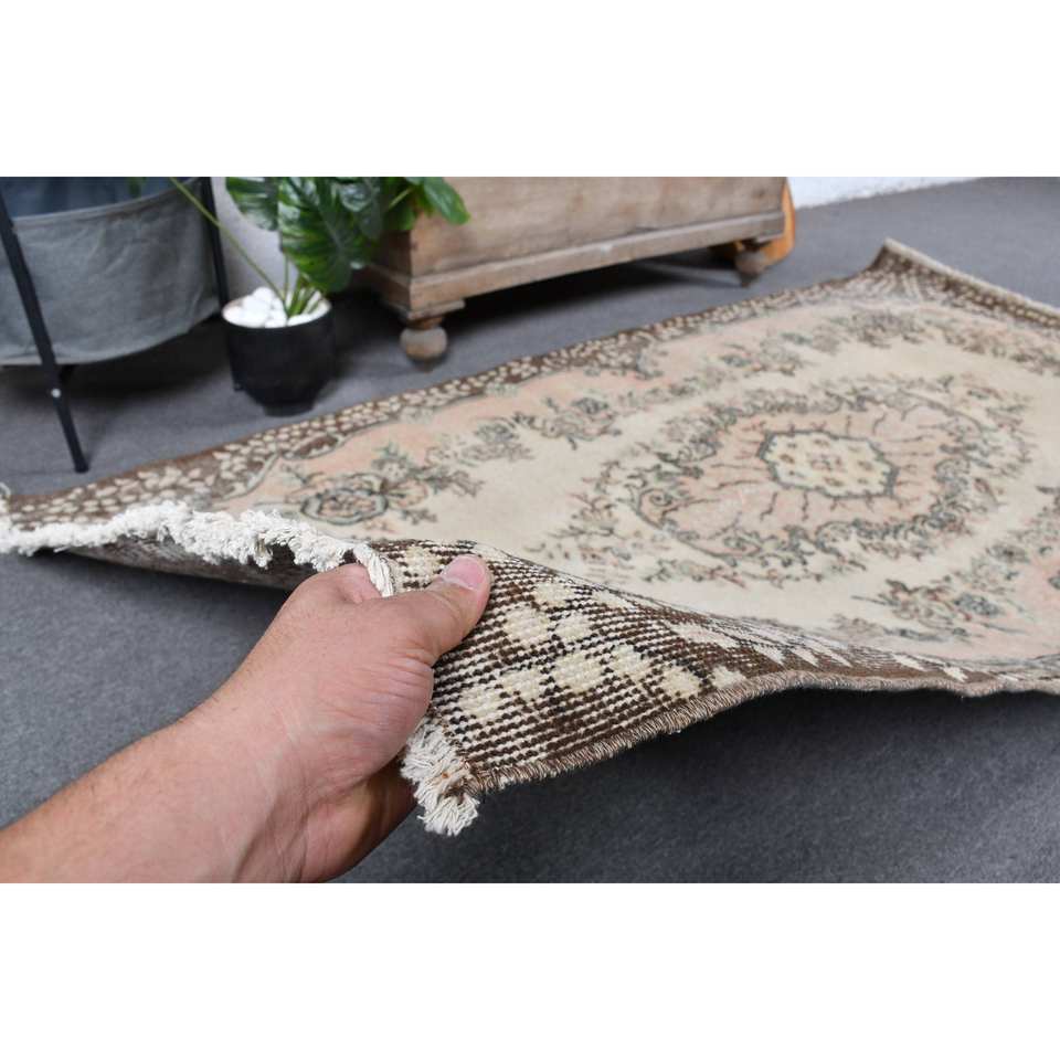 พรมขนสัตว์ตุรกีขนาด38x69ฟุตแนววินเทจสีเบจและน้ำตาลผ้าทอแบนสำหรับตกแต่งห้องนั่งเล่นพื้นหลังเป็นยาง