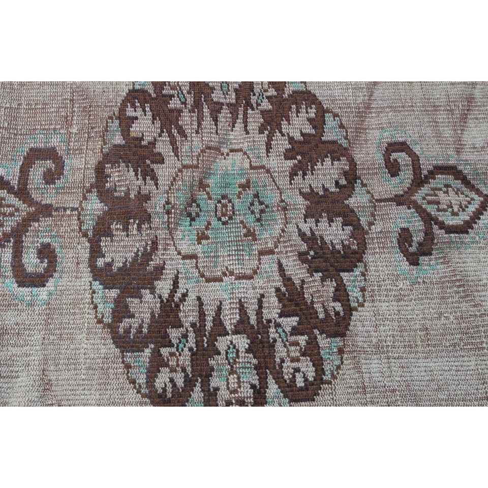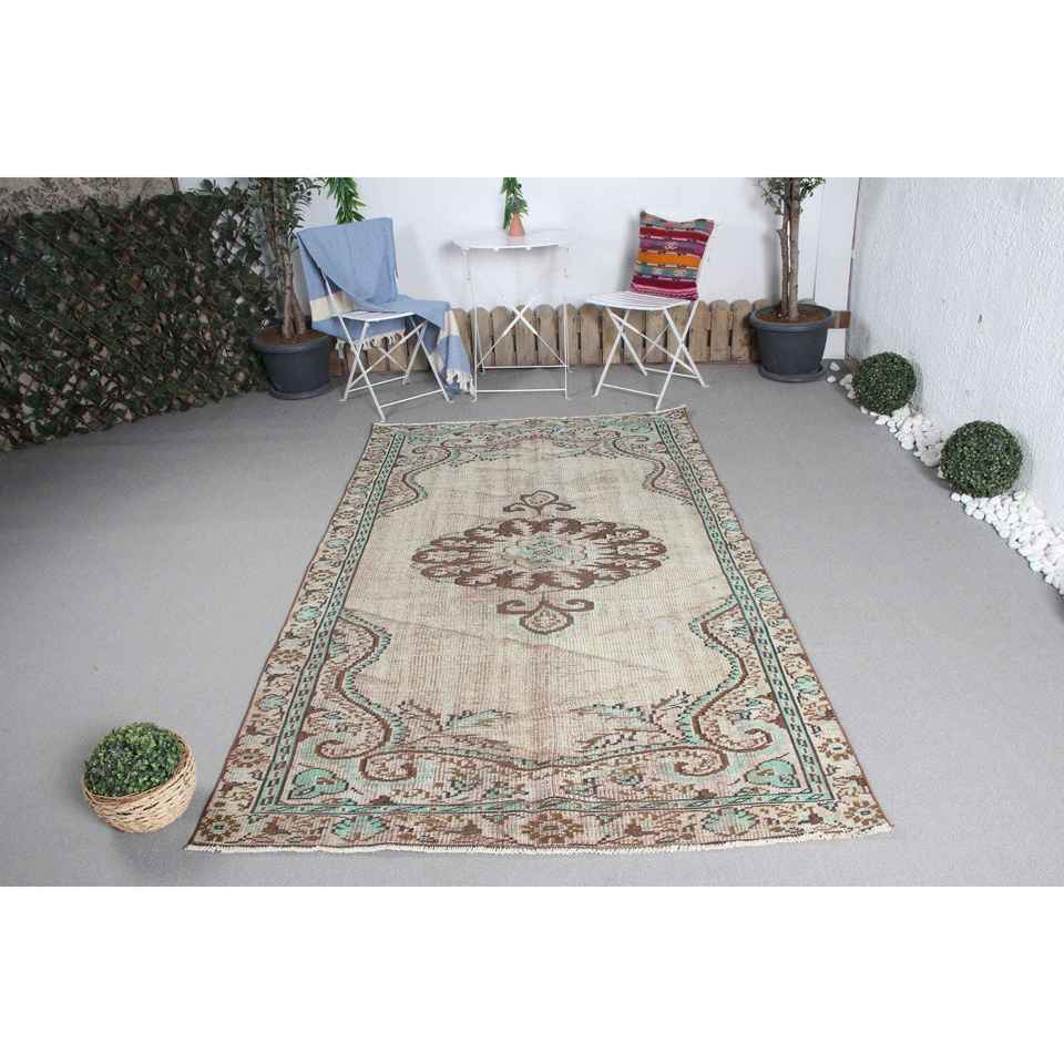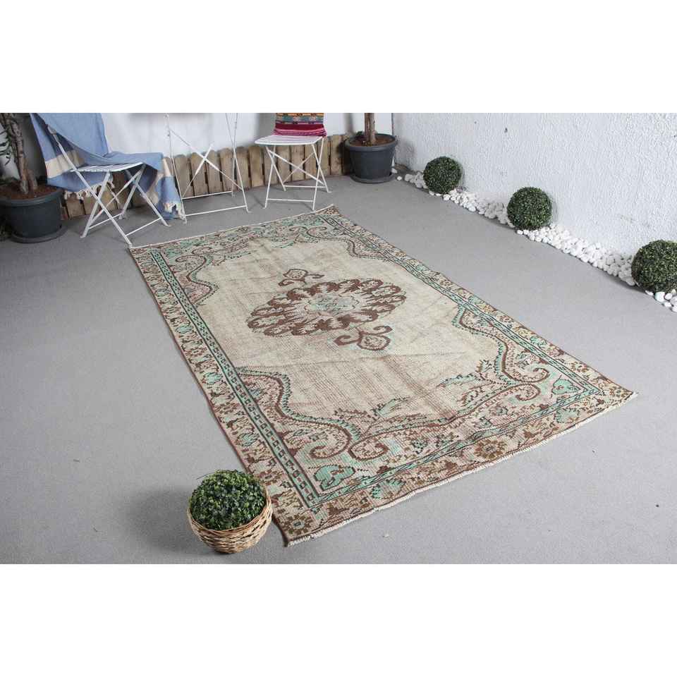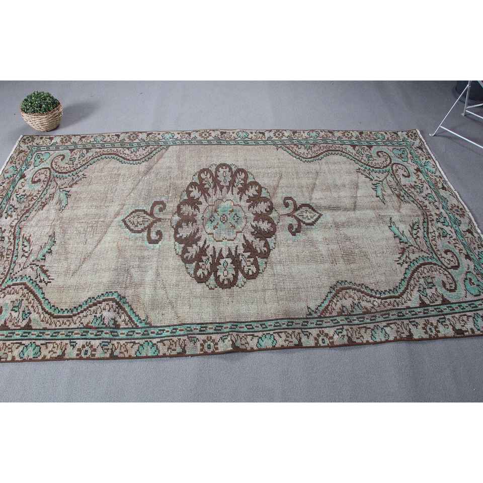 Vintage 4.6x7.9 ft Rug, Area Turkish Rug, Brown Green Floral Wool Rug