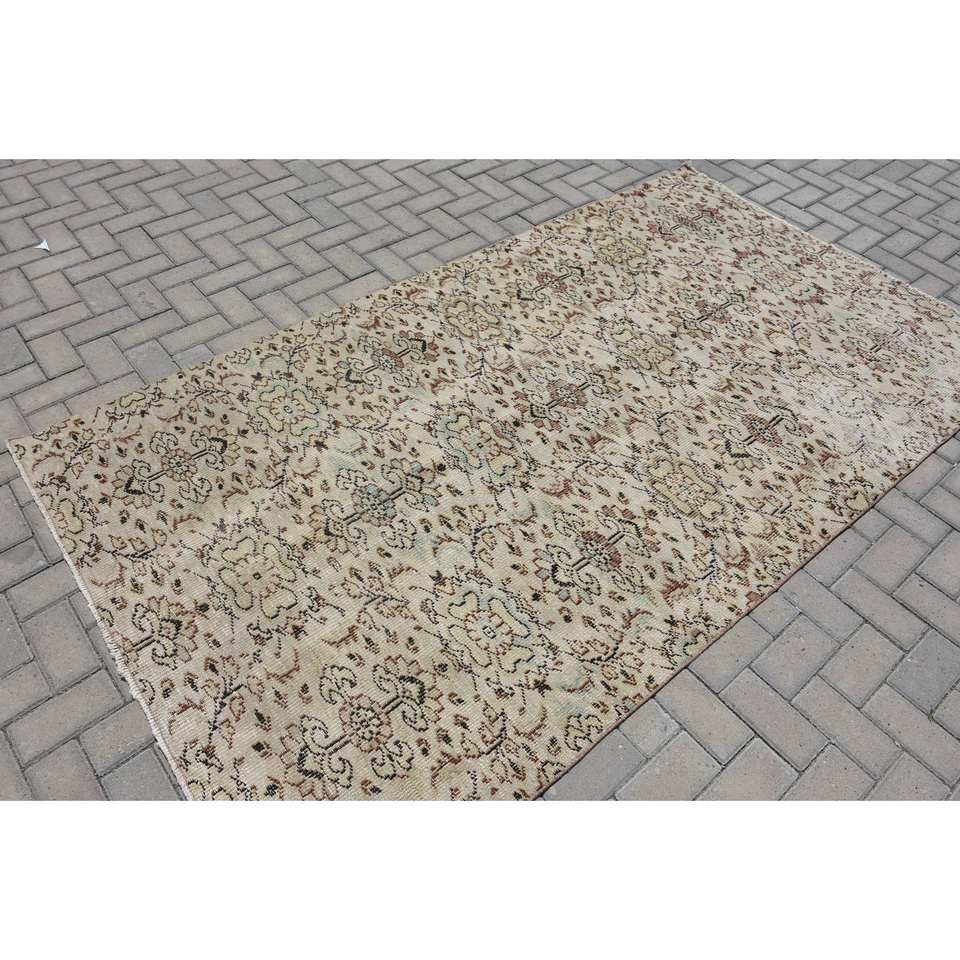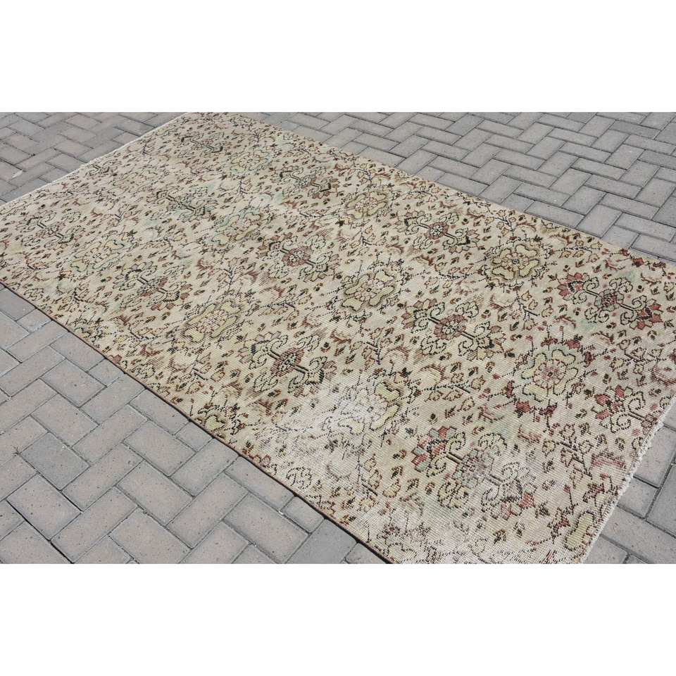 พรมขนสัตว์ตุรกีสีเบจ4.8ft วินเทจ8.4ft สี่เหลี่ยมผืนผ้าพื้นที่ขนาดใหญ่ที่มีลวดลายนามธรรมสำหรับห้องนอนห้องโถงพื้นหลังทำจากน้ำยาง