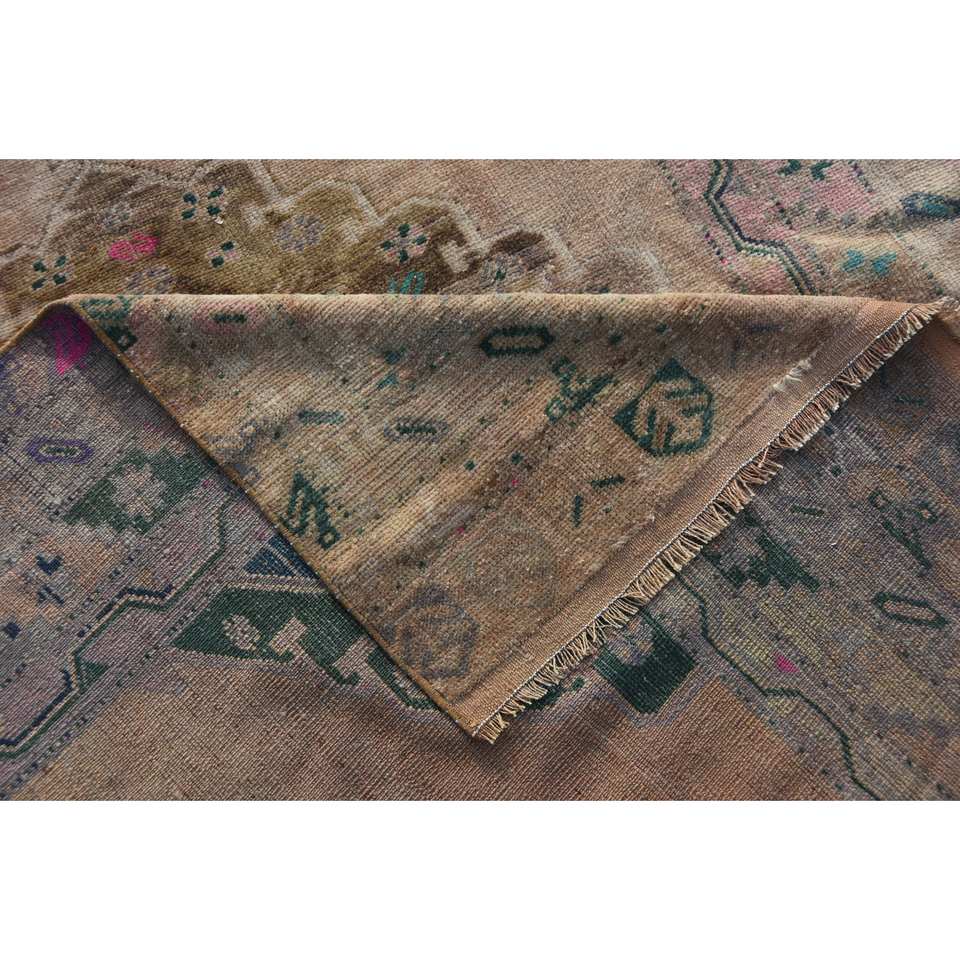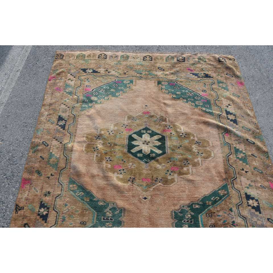 4ft วินเทจ7in x 12ft พรม9in ตุรกีทอสีเบจสีเขียวแบนลายปะต่อแบบคลาสสิกยางขนสัตว์สำหรับตกแต่งห้องนั่งเล่น