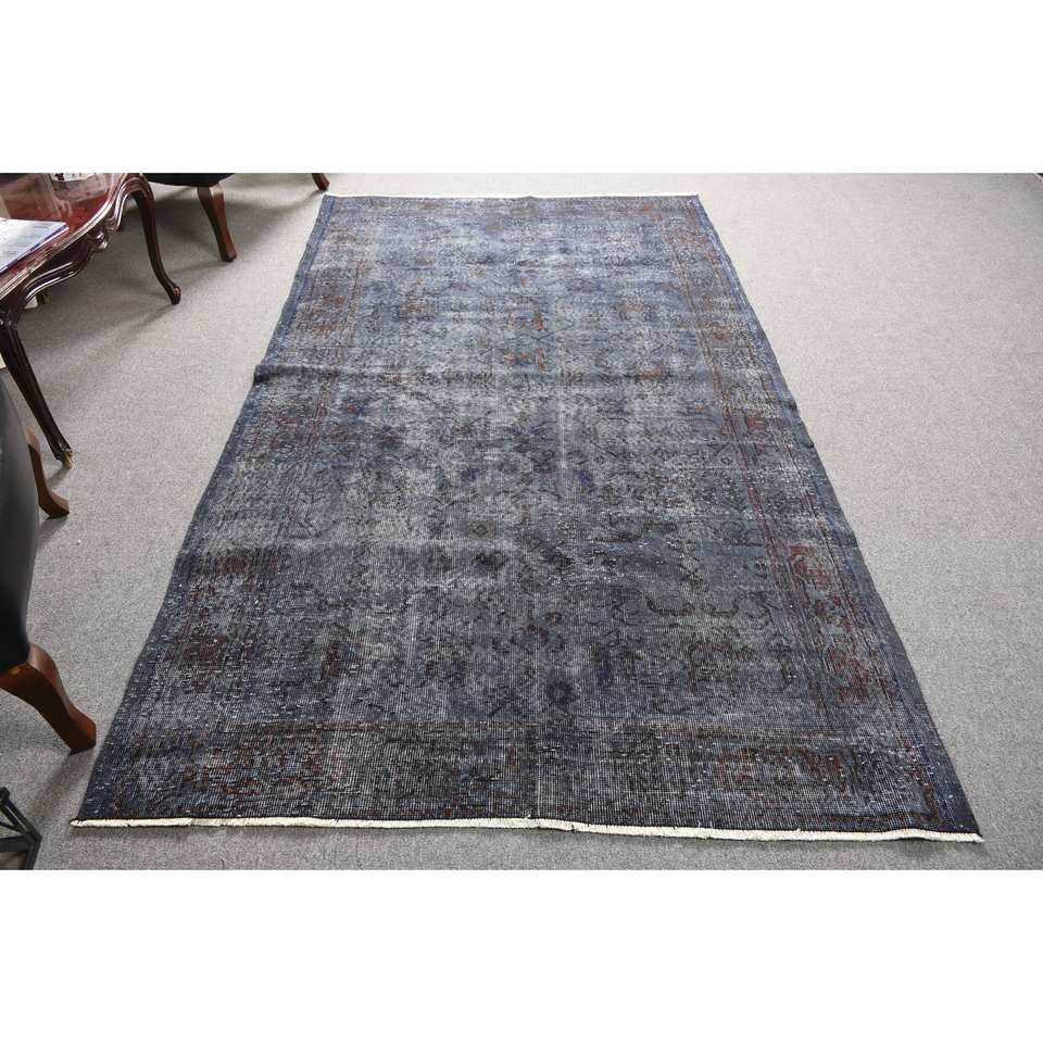 4ft วินเทจ9in x 8FT พรมตุรกี8in สีฟ้าและน้ำตาลพรมสานแบนขนสัตว์มียางรองสำหรับตกแต่งห้องนั่งเล่น