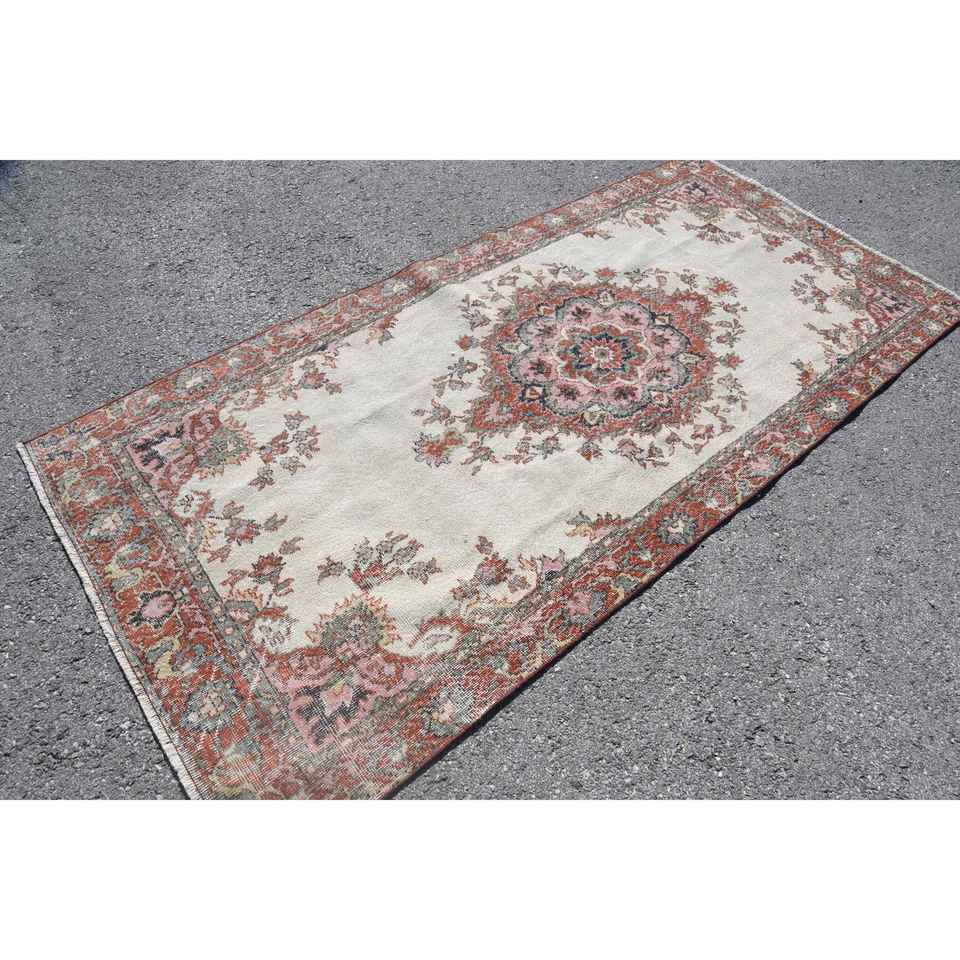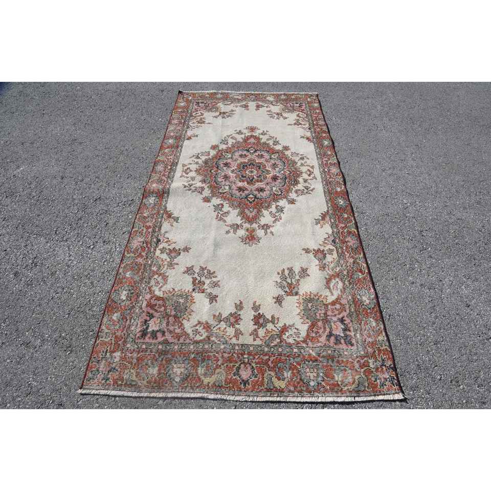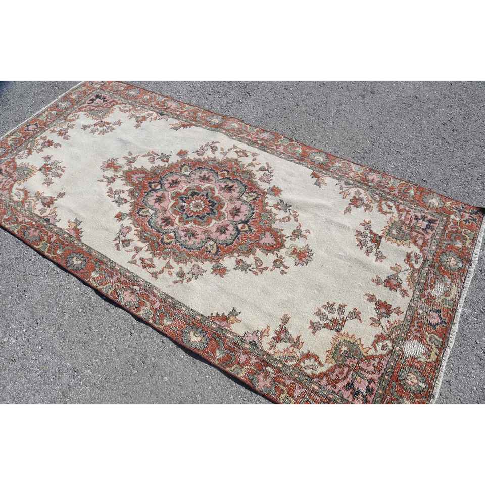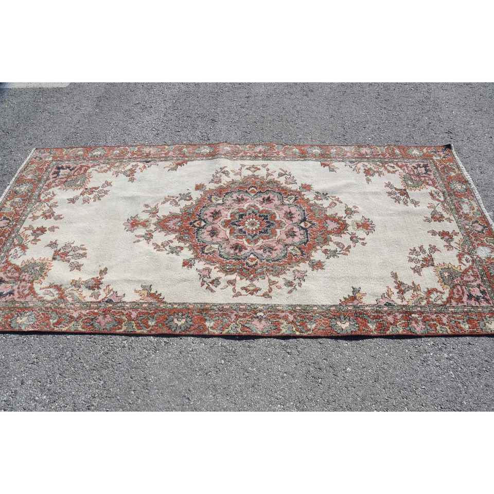 พรมวินเทจขนาด 4x8.3 ฟุต พรมตุรกี พรมขนสัตว์ลายสัตว์สีเบจแดง