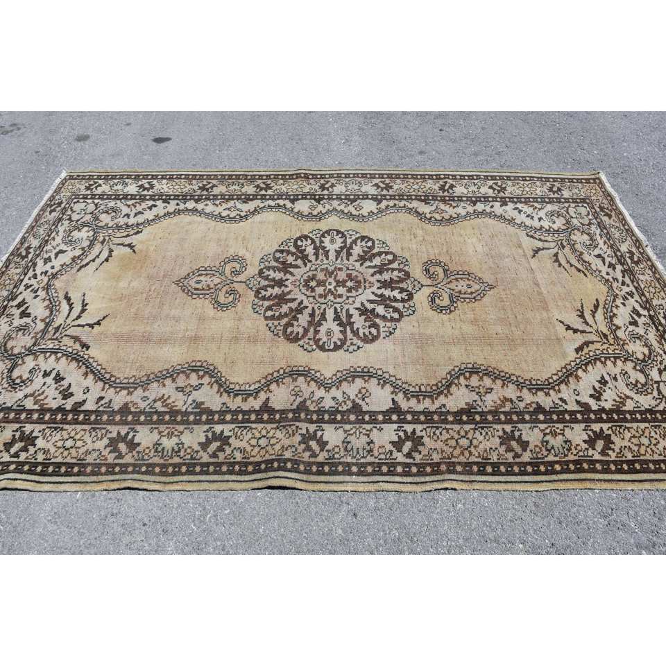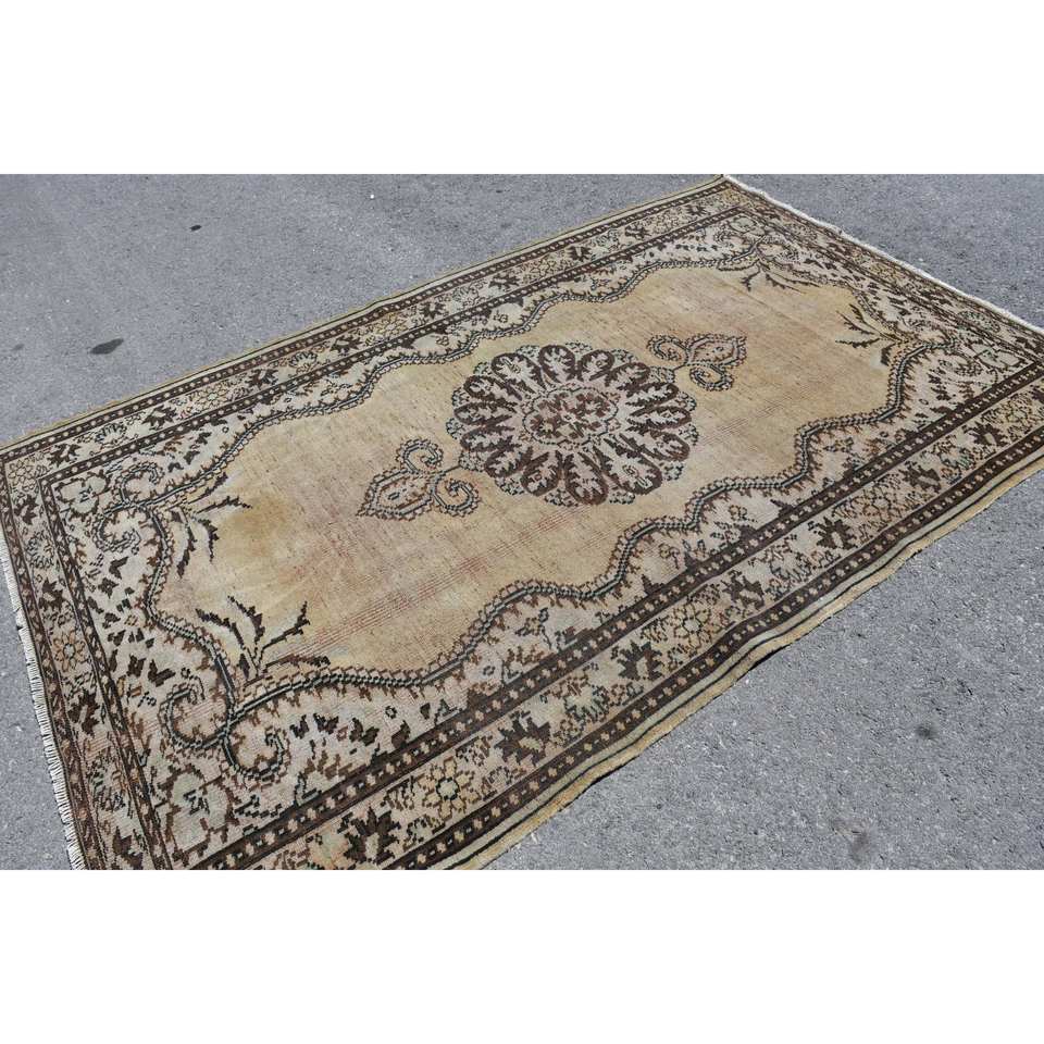 พรมตุรกีโบราณขนาด5.5x8.7ฟุตลาเท็กซ์ขนสัตว์โพลีเอสเตอร์ขนแกะสำหรับห้องนั่งเล่นห้องโถง