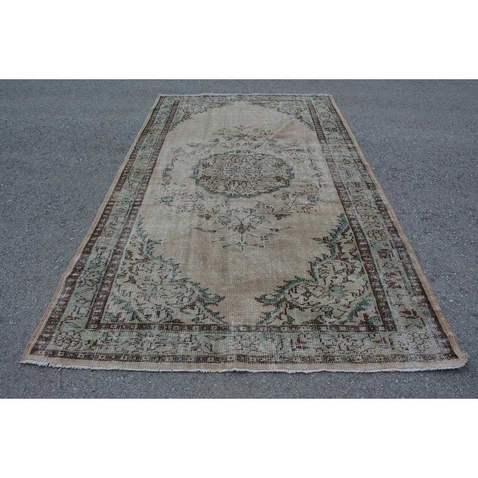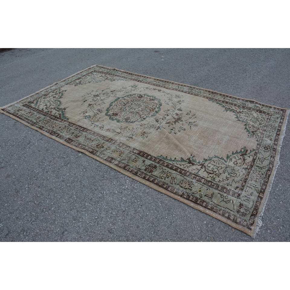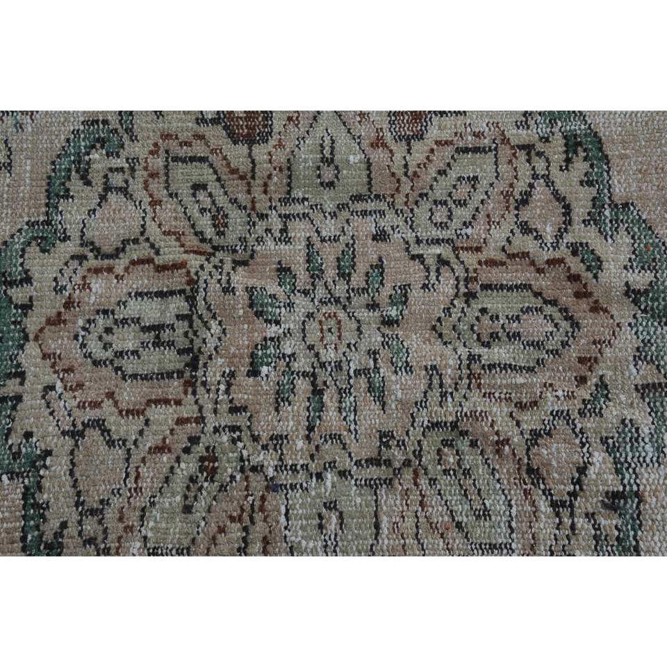 พรมขนสัตว์ตุรกี9.5ft วินเทจสีเบจและสีเขียวแบบเย็บปะติดปะต่อกันลายสานแบนพร้อมแผ่นยางรองสำหรับตกแต่งห้องนั่งเล่น