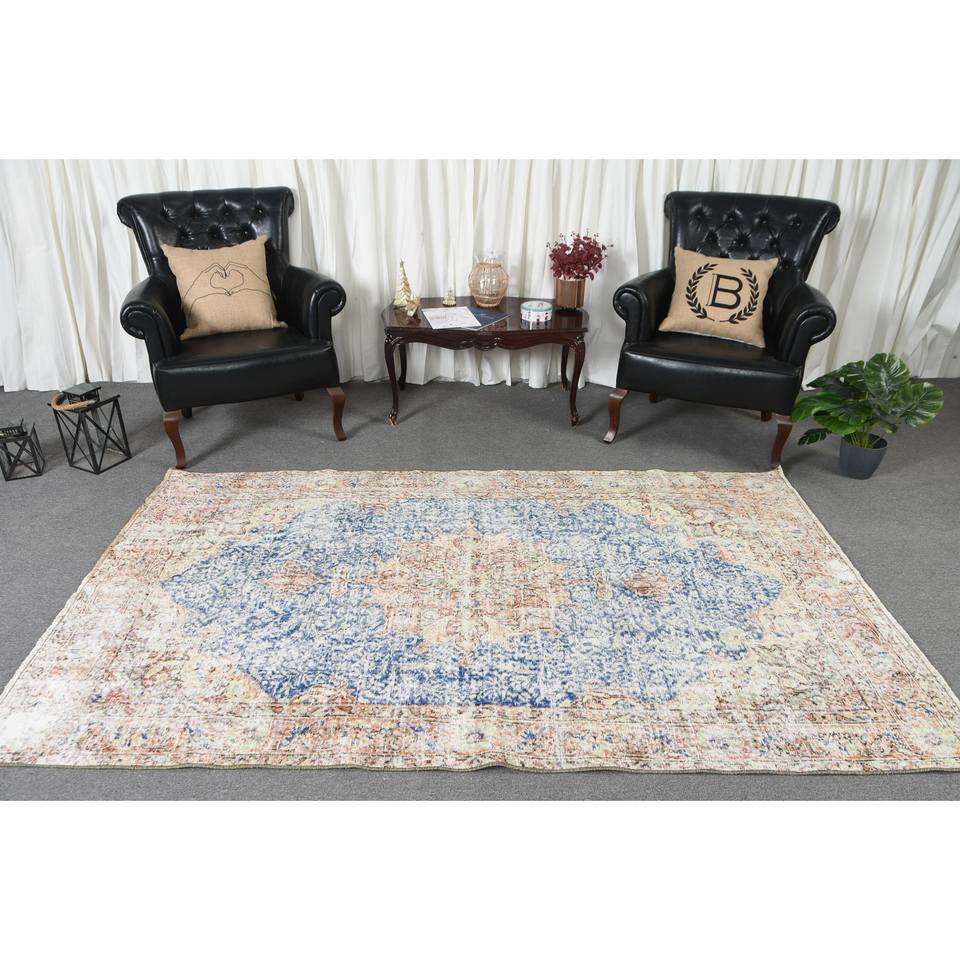 พรมตุรกีขนาด5x8นิ้วแนววินเทจขนสัตว์สีฟ้าและสีเบจผ้าถักลายเย็บปะติดแบบแบนพรมห้องนั่งเล่นพื้นหลังลาเท็กซ์