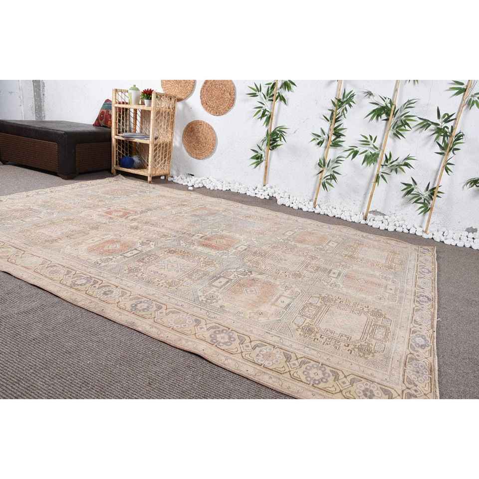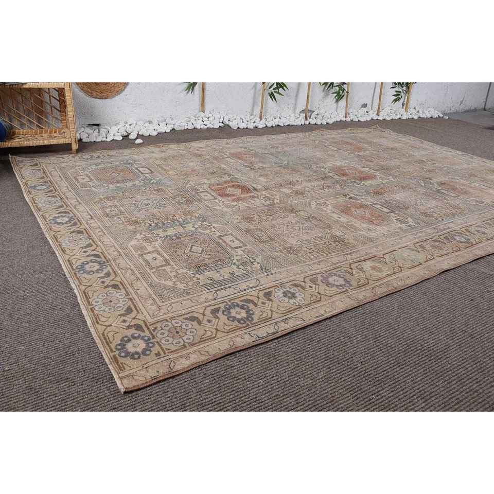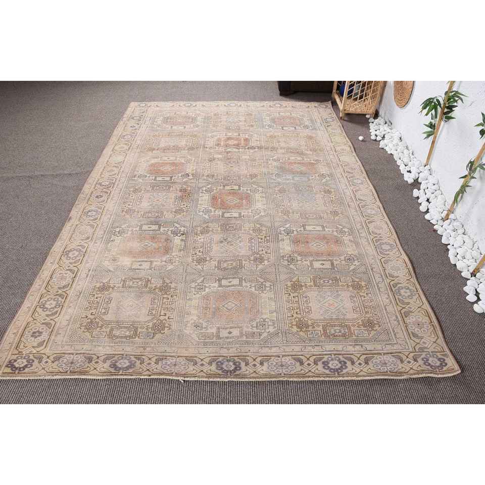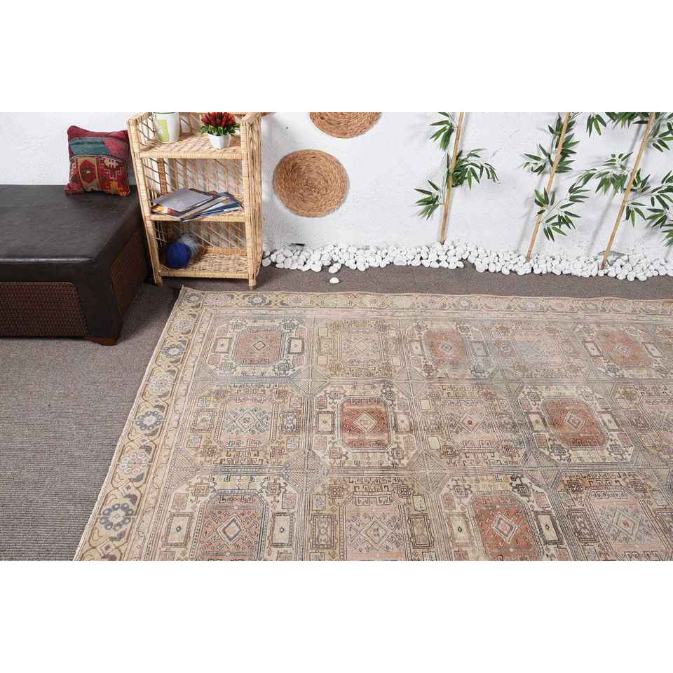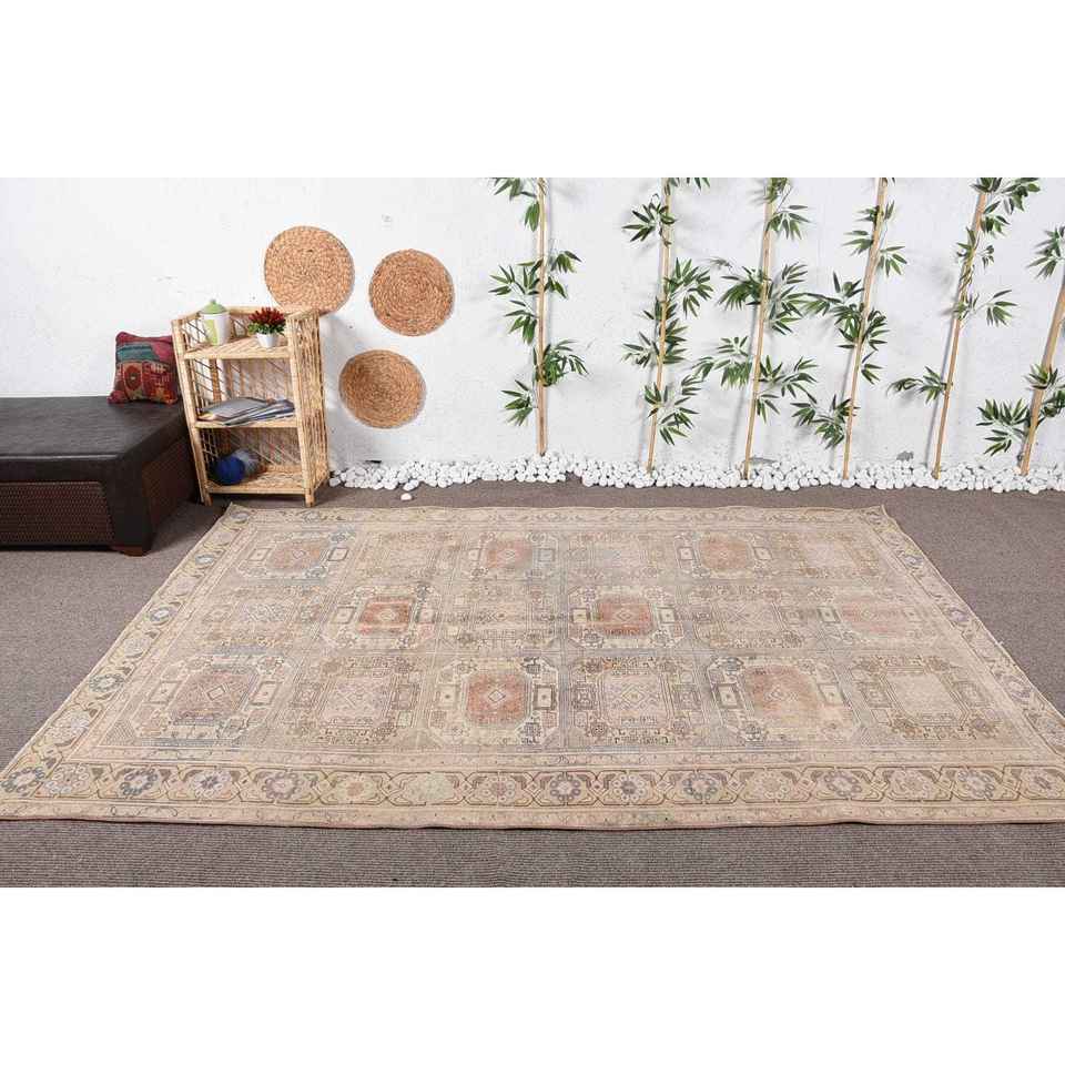 พรมวินเทจขนาด 6.1x9 ฟุต พรมตุรกีขนาดใหญ่ พรมลายตารางสีเบจแดง