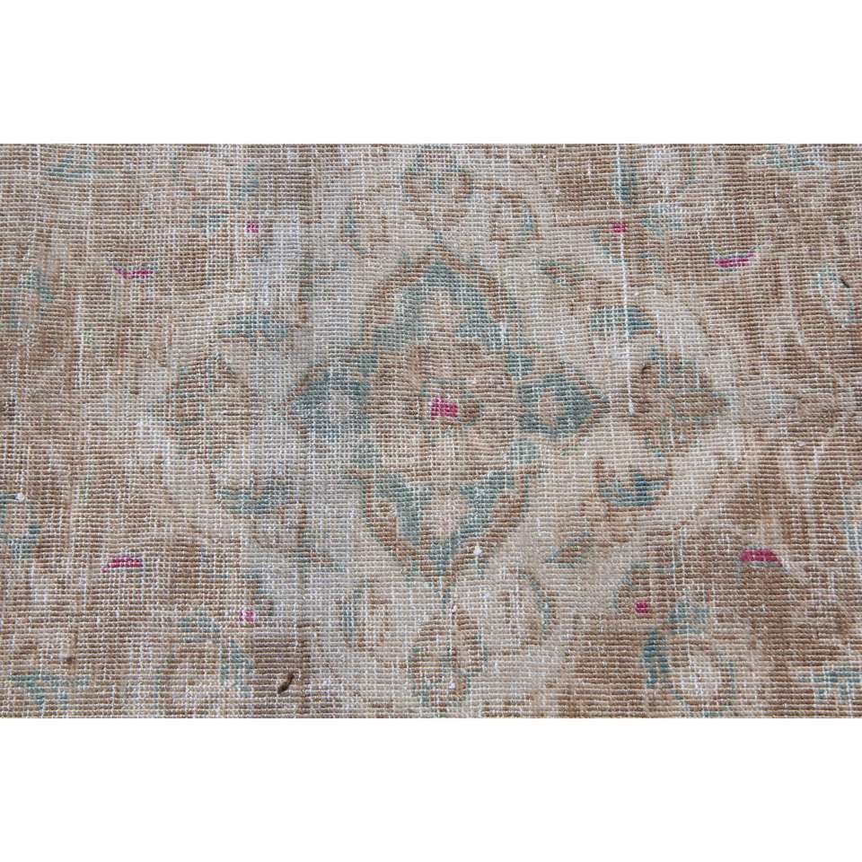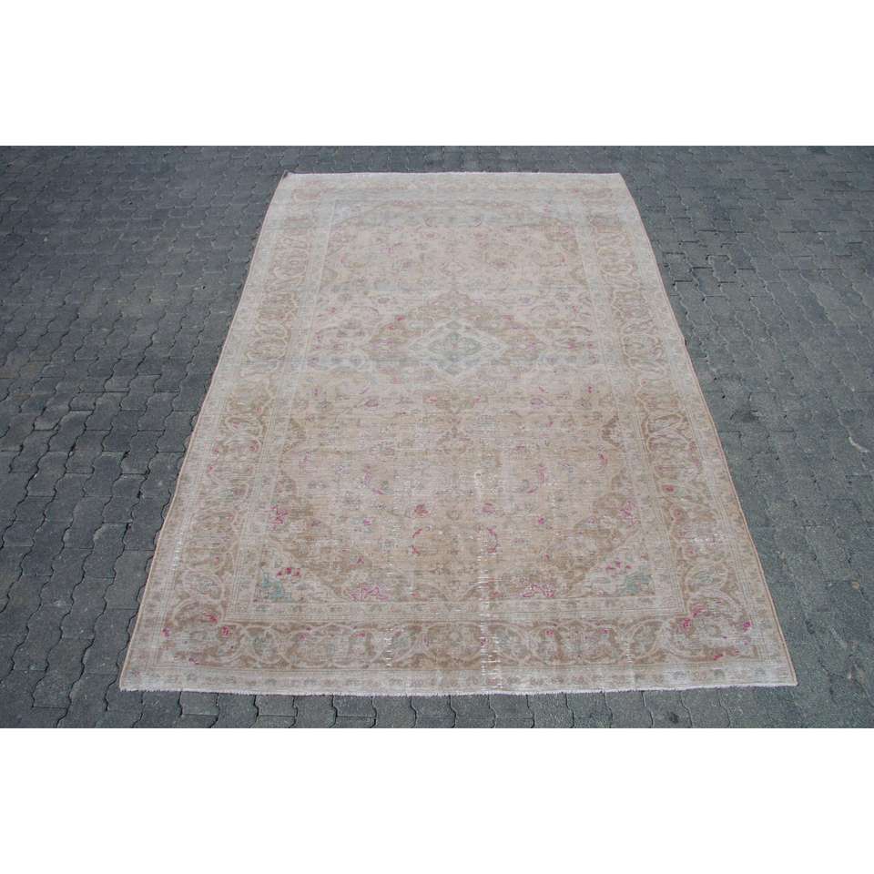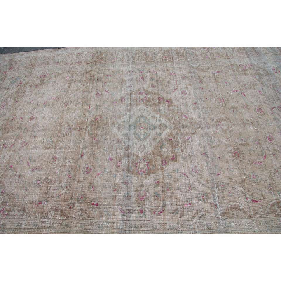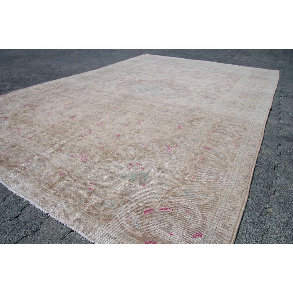 พรมวินเทจขนาด 6.46x9.6 ฟุต พรมตุรกีขนาดใหญ่ พรมลายดอกไม้สีเบจชมพู