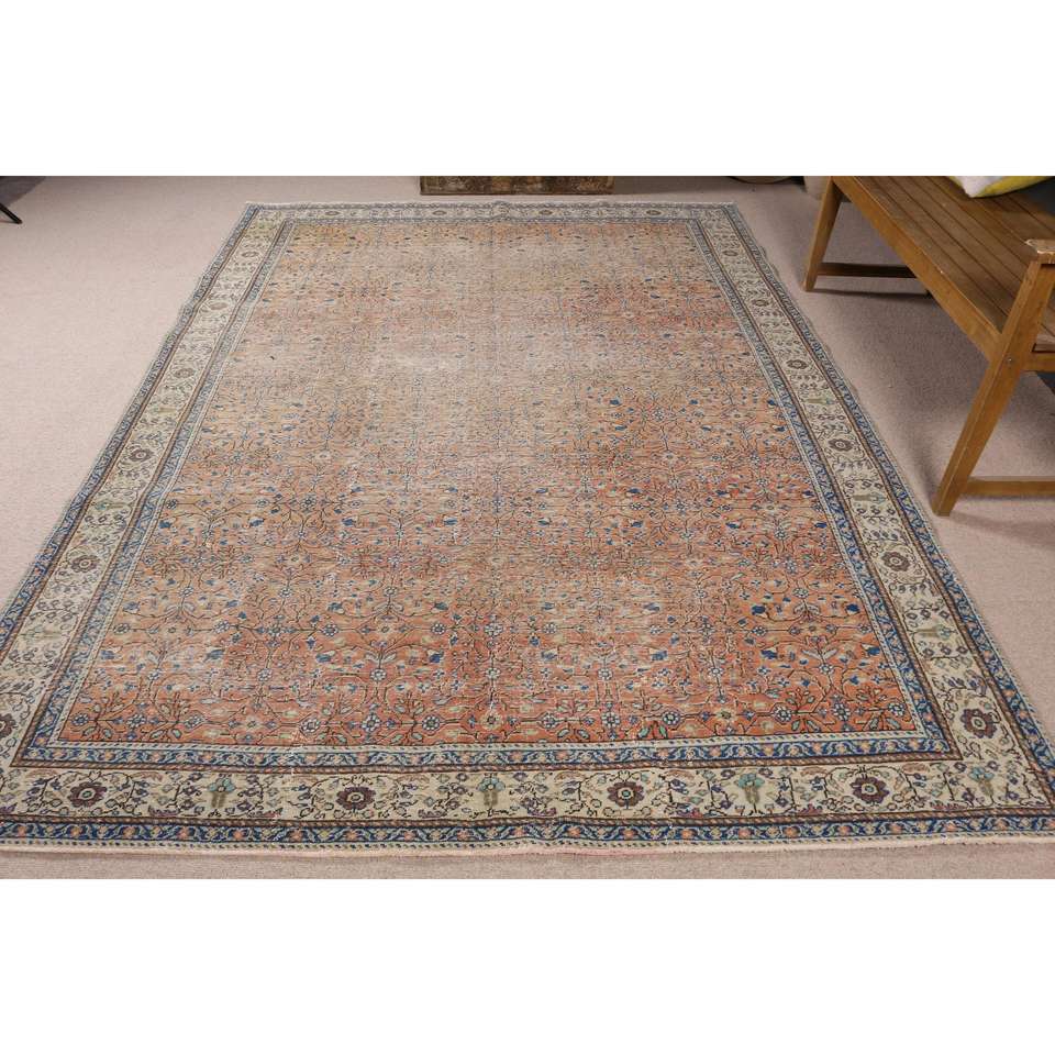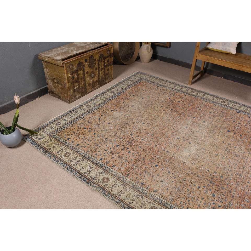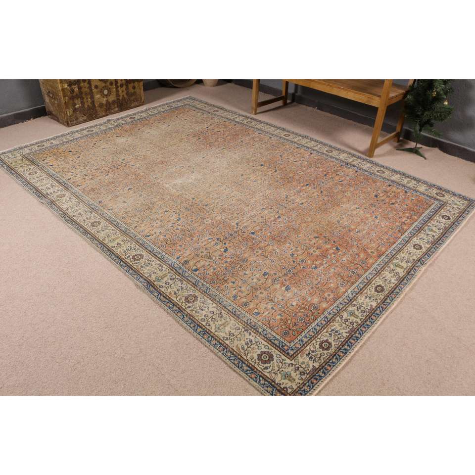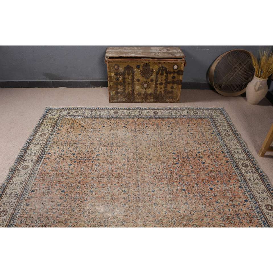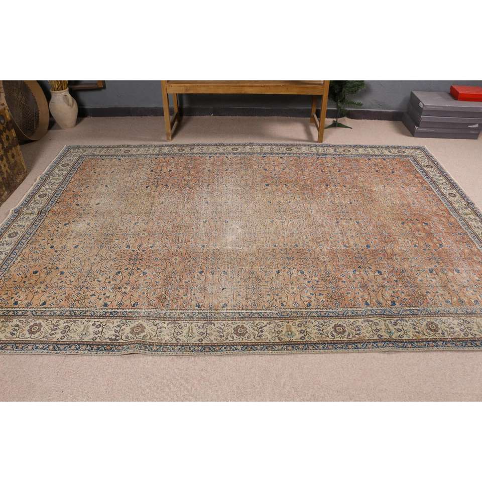 พรมวินเทจขนาด 6.4x9.4 ฟุต พรมตุรกีขนาดใหญ่ พรมลายต้นไม้และพืชสีน้ำตาล